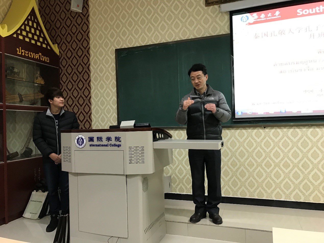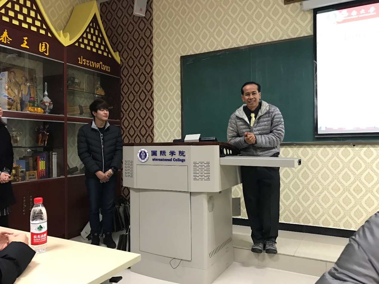 来自孔敬职业技术公司的副董事长Mr. Surak Sutthiprapa应邀讲话,他对bevictor1946韦德官网热情的接待和周到的安排工作给予了肯定与赞许,对于公司先进的教学设施及干净、整洁的职工学习与生活环境给予了高度评价。此外,他还介绍了孔敬职业技术公司汉语培训概况,相信营员们一定会学有所得,一定会满怀期望而来,开心愉快而归,并预祝此次冬令营圆满成功。