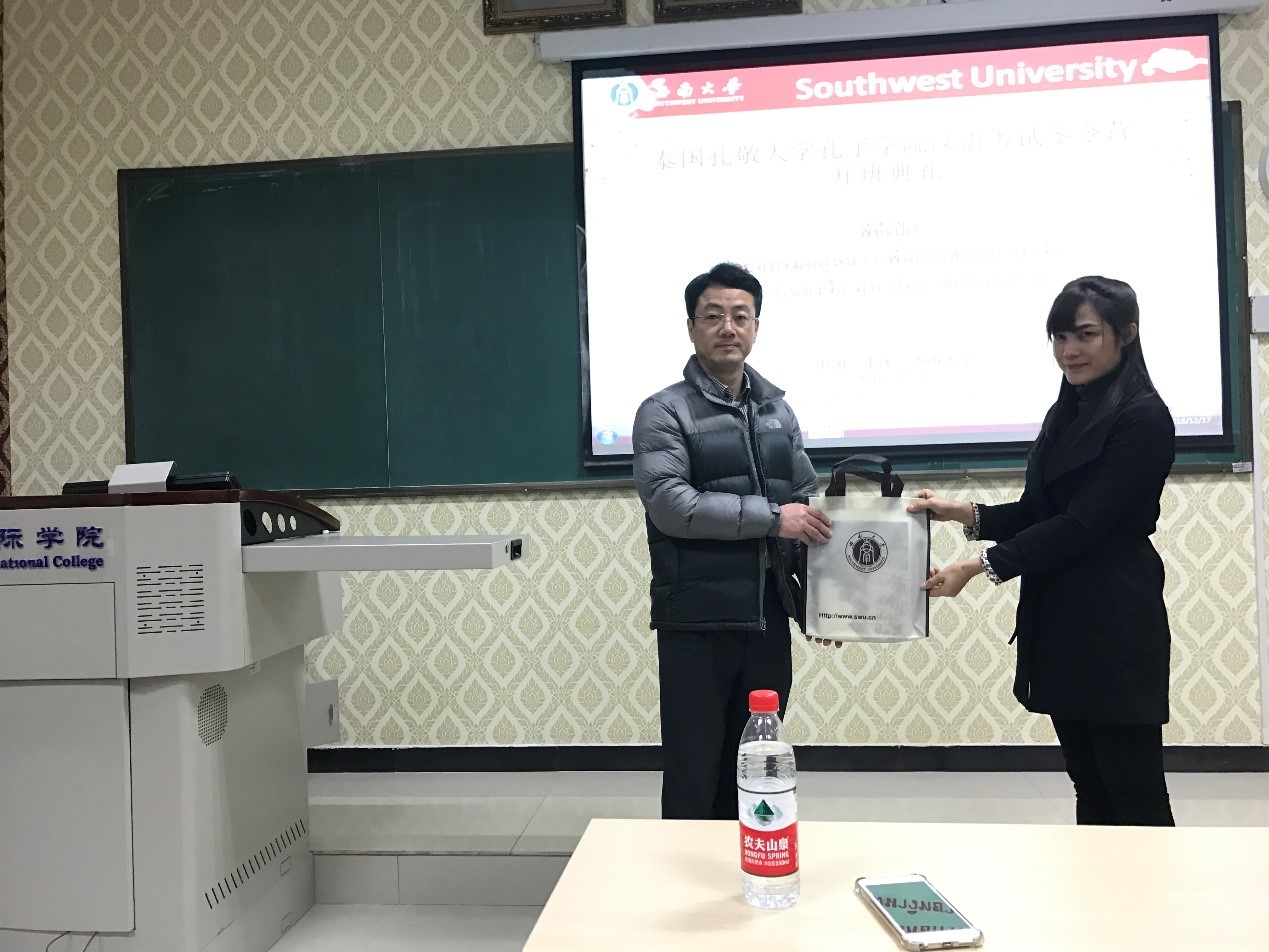 12月17日下午4:30,泰国孔敬大学孔子公司汉语考试冬令营开班典礼在公司紫云楼210教室顺利举行。来自泰国2所职业公司的4名领队教师、20名员工,孔敬大学孔子公司带队教师丰雅,以及bevictor1946韦德官网副经理李航、招生办公室主任代远鸿、项目负责人张波、泰国员工志愿者等30余人参加了此次开班典礼。