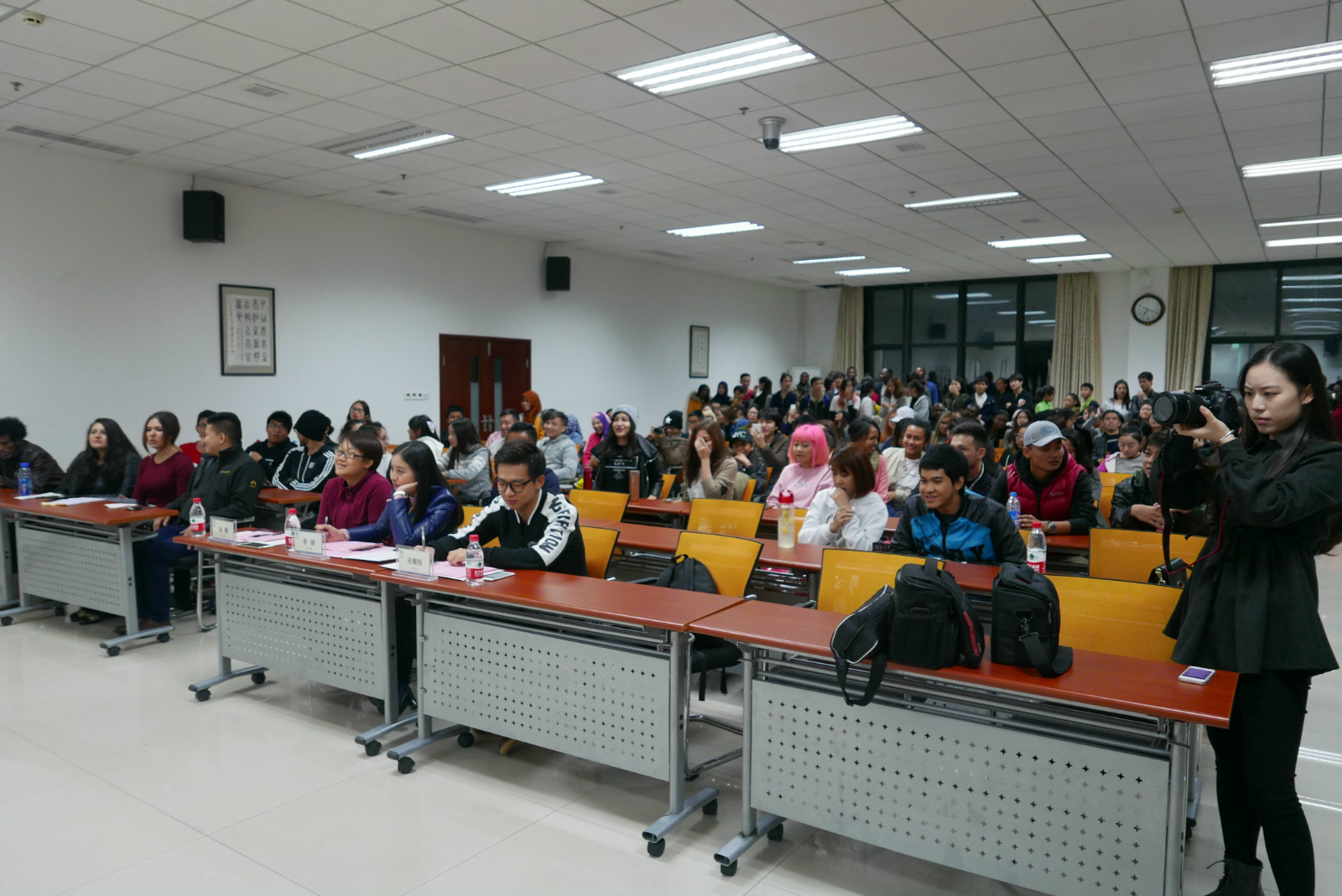 2016年10月28日晚,别开生面的来华职工中文歌曲大赛初赛在bevictor1946韦德官网紫云楼317教室顺利举行。本次大赛有来自贝宁、俄罗斯、哈萨克斯坦、韩国、马达加斯加、泰国、乌兹别克斯坦等15个国家的30多名职工踊跃报名参加。