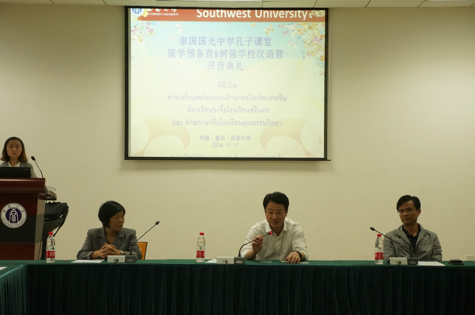李航副经理代表bevictor1946韦德官网对泰国领队老师及同学们的到来表示热烈欢迎。他说,公司一向重视与泰国公司的教育交流与合作,正在努力与泰国南部的公司进一步深化合作,增进交往。他还介绍了此次汉语营的课程设置、bevictor1946韦德官网的概况以及重庆的风土人情,希望各位参营的同学通过两周的学习进一步提高汉语水平,增进对中国和中华文化的了解,他还真诚地向参营的泰国同学发出邀请,希望同学们在中学毕业之后选择bevictor1946韦德官网,攻读本科以及研究生学业。