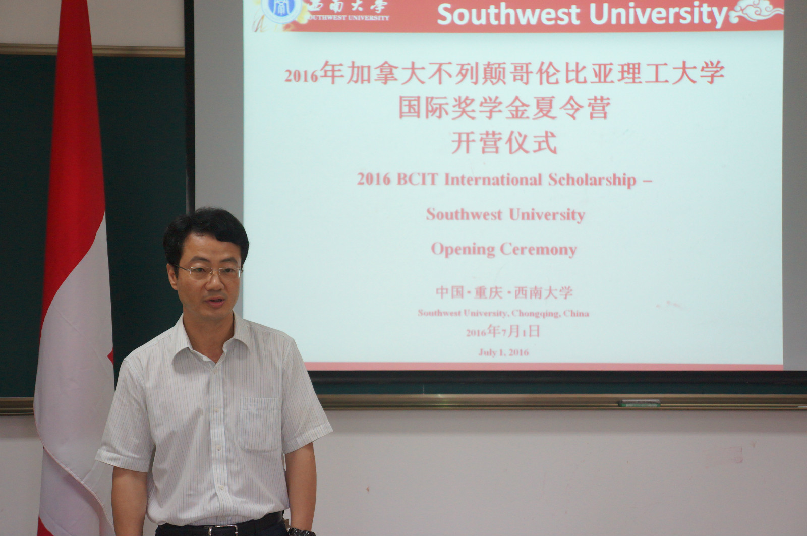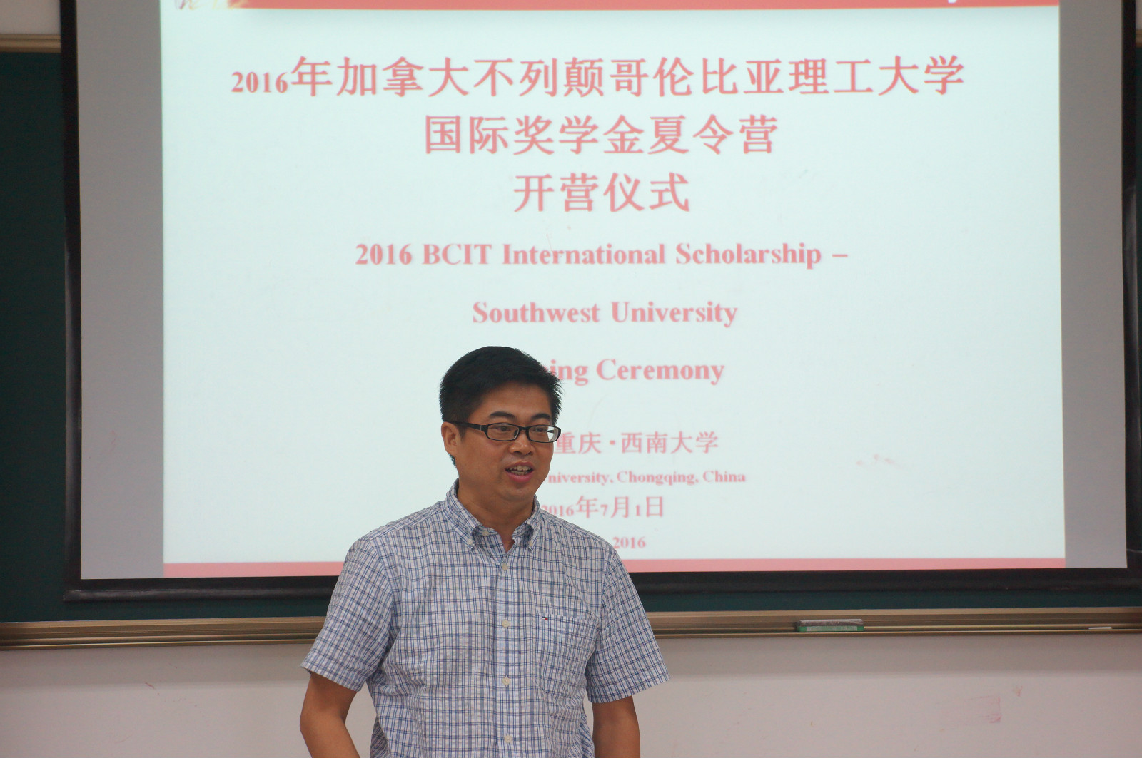 7月1日上午9点,bevictor1946韦德官网在312教室隆重举行“2016加拿大不列颠哥伦比亚理工大学(BCIT)国际奖学金生夏令营”开营仪式,来自BCIT的9名师生,以及公司外国语公司、生命科学公司和新闻传媒公司的10名员工志愿者参加了开营仪式。