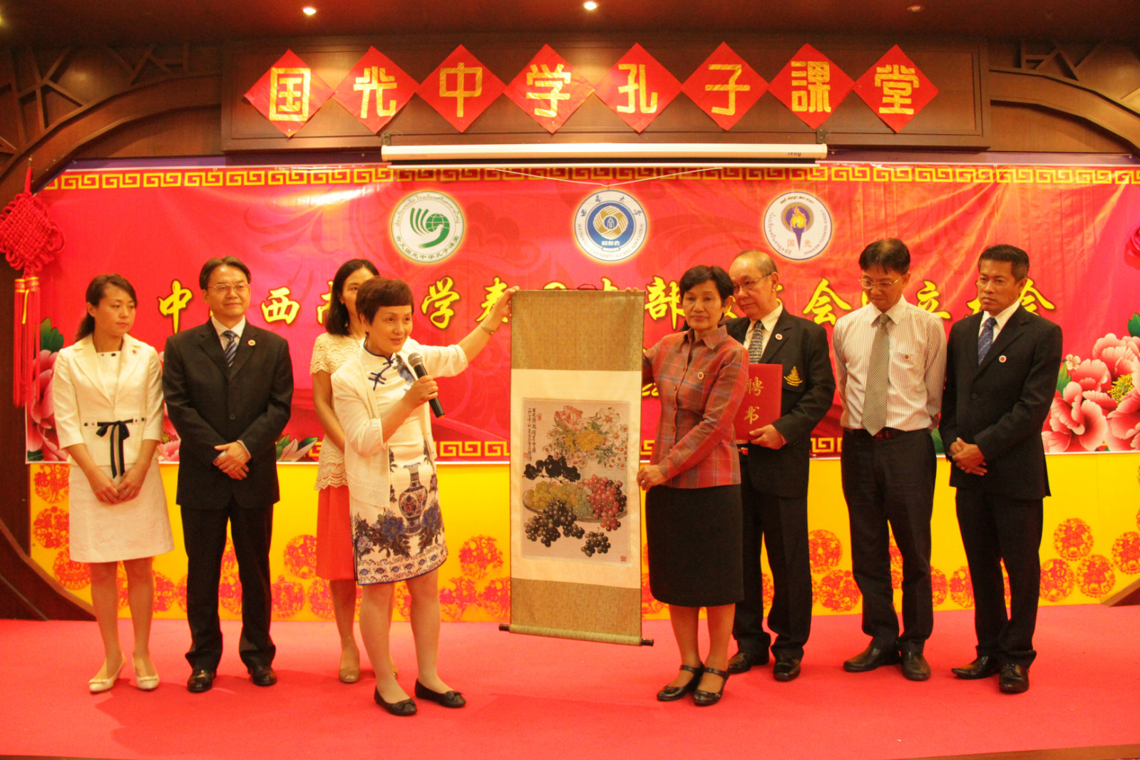 封云副秘书长为员工会授牌并为谢海秋会长颁发了聘书。林萍代表员工总会(筹)和泰国南部员工会相互赠送了纪念礼物。