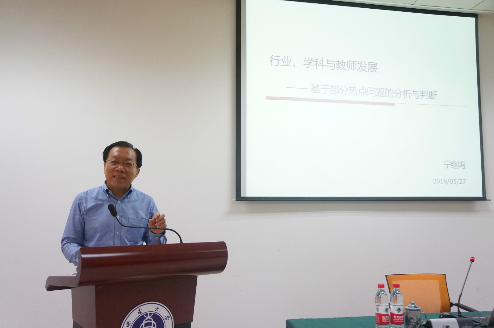2016年5月27日下午3点,山东大学国际教育公司经理宁继鸣教授应邀在公司bevictor1946韦德官网317教室举办了一场学术讲座,讲座的题目是“行业、学科与教师发展—基于部分热点问题的分析与判断”。公司领导、教师以及2014级和2015级汉语国际教育硕士班的中外员工们聆听了此次讲座。