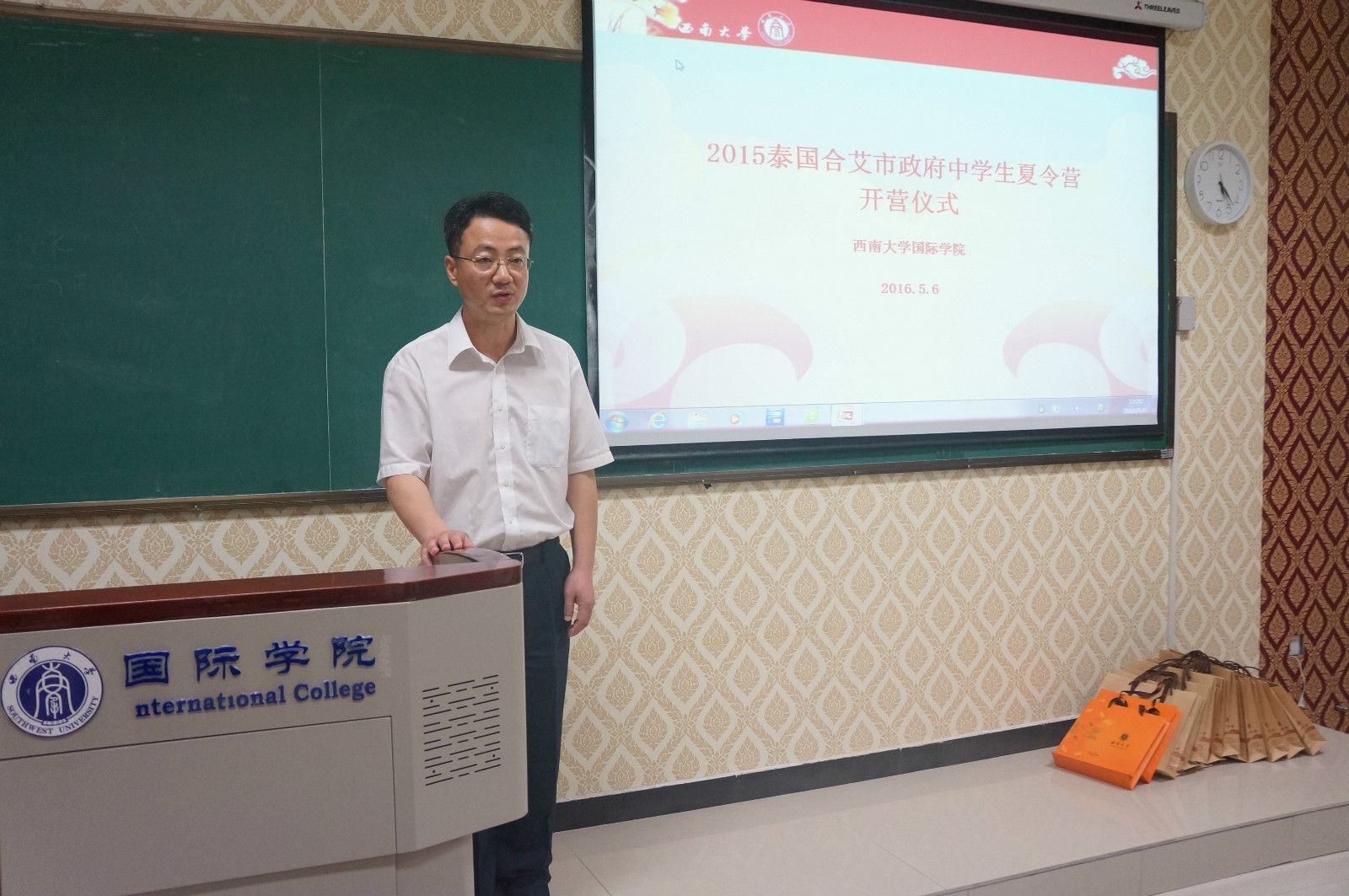 5月6日下午5时,2016泰国合艾市政府中员工夏令营开营仪式在bevictor1946韦德官网紫云楼举行。bevictor1946韦德官网副经理李航、外国员工招生办公室主任代远鸿、泰国合艾市政府副市长SUMRIT BOONRAT先生、泰国合艾市教育局局长SUTASNAN NIAMRAT女士、以及教师代表和全体学员参加了本次开营仪式。