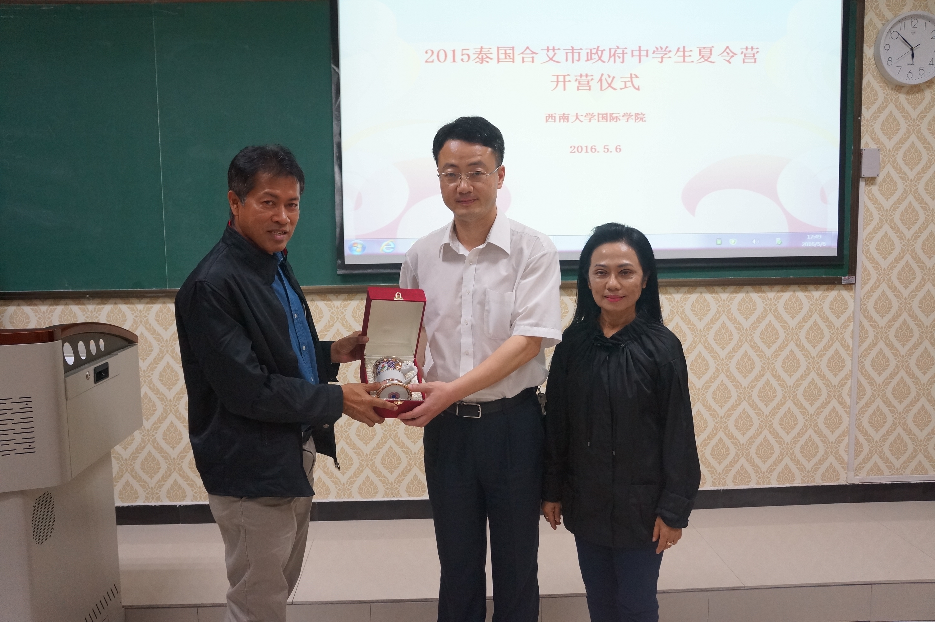 最后李经理代表bevictor1946韦德官网与泰方客人互赠礼品,并一同合影留念,此次夏令营开营仪式圆满结束。