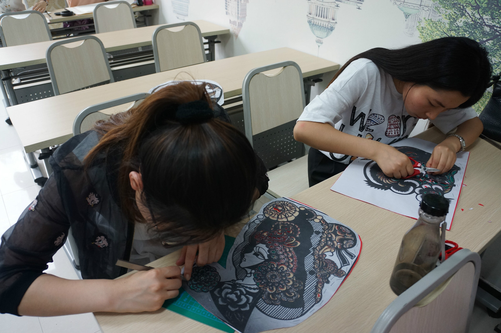 一幅幅精美的剪纸作品传达出中华文化中温良恭俭让的美德,琵琶、古筝演奏通过有声的方式准备向世界展示出最美的中华之声,婀娜多姿的民族舞蹈让评委老师赞不绝口,压轴表演的皮影戏更是博得了评委老师和同学们的满堂彩。