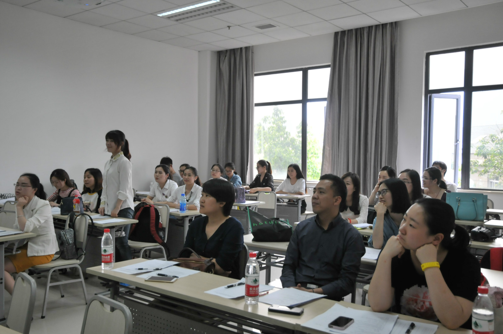 课堂教学技能大赛当天,公司汉语国际教育系主任耿军、涂敏、范媛媛出席了此次大赛并担任评委。比赛中选手模拟真实的对外汉语课堂,运用所学专业知识,在三尺讲台上尽情地展示自己,博得了听课老师和同学们的阵阵掌声。赛后,三位评委对同学们的精彩讲课给予了积极评价,并针对同学们的实际教学情况提出了许多宝贵的意见和建议,鼓励同学们珍惜眼前的学习时间和机会,努力提升自己的专业素养,为海外教学实习奠定扎实的专业基础。各位同学都虚心接受老师的点评,并纷纷表达了对公司领导和老师悉心栽培的由衷感谢。