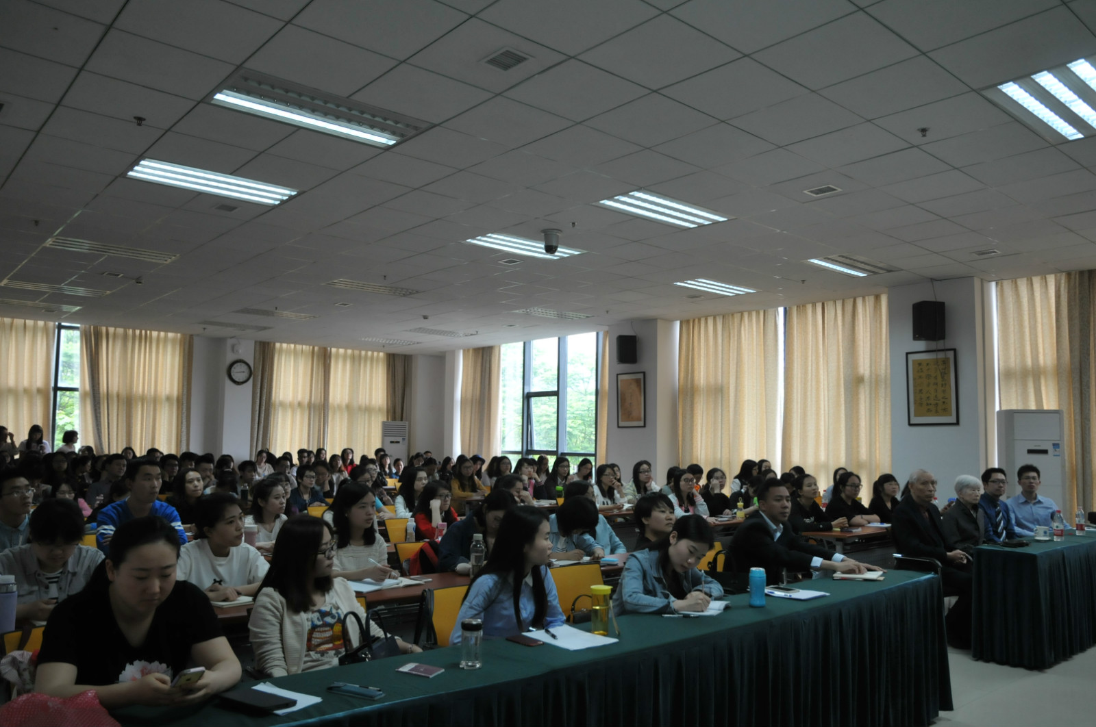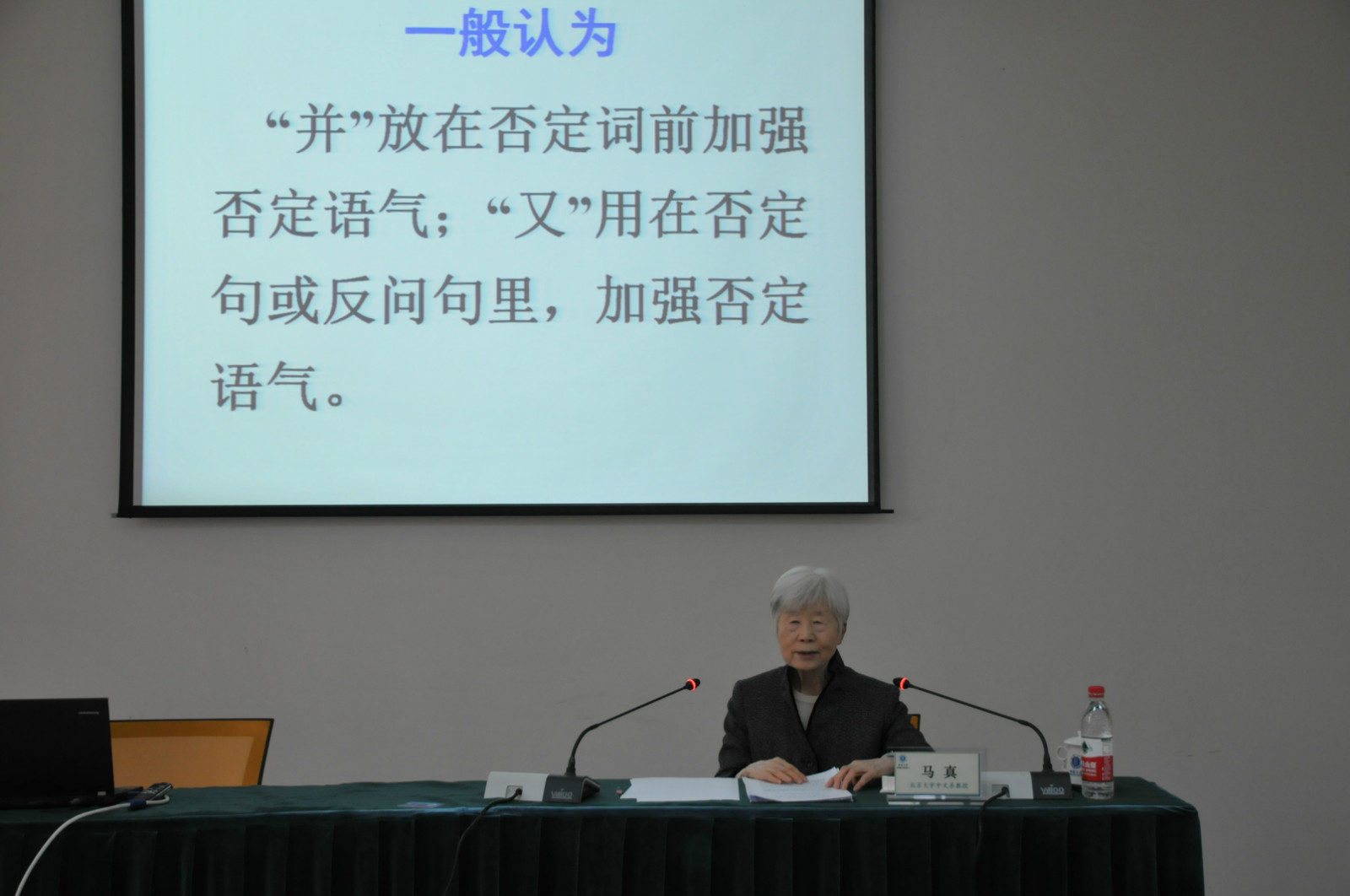 在老师和同学们热烈的掌声中,马真先生开始了题为“要重视词语和句法格式的用法研究”的讲座,她为我们细致讲解了语气副词“并”、“又”,副词“反而”、“按说”,状态词“好端端的”,以及“把”字句、“被”字句等使用的语义背景。在分析过程中,马先生以职工出现的偏误句为例,指出不以汉语为母语的职工在汉语运用中往往只重视辞书对词义的解释,却忽略了其使用的语义背景。讲座过程中,马先生寓教于乐,通过对外汉语教学的实例向我们展示了语义背景对我们选词造句的影响,充分显示了马真先生在现代汉语虚词研究方面深厚的功底;在研究方法上,马先生更是另辟蹊径,注重创新。结合bevictor1946韦德官网的情况,马先生强调在职工教学中,一定要重视词语和句法格式的语义背景,也希望这个问题能够引起对外汉语教学届或汉语国际教育界以及辞书编撰者的重视。最后马真先生总结道:“要说清词语和句法格式使用的语义背景十分不易,但是面对日益发展的汉语国际教育,我们必须予以重视。”