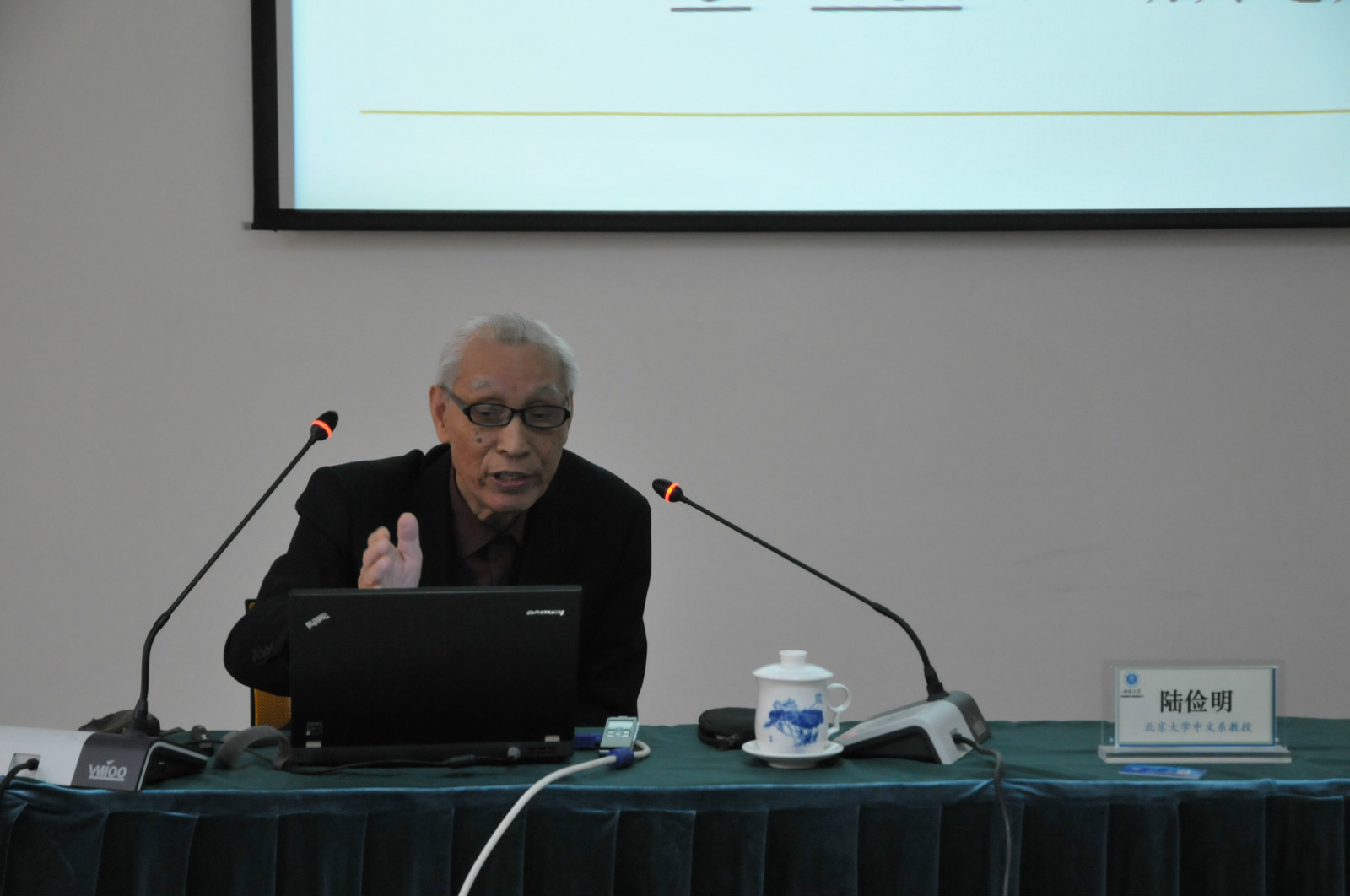 马真先生的讲座开启了师生们的头脑风暴,紧接着陆俭明先生又为大家带来了一场饕殄盛宴,为大家作了题为“语言研究要不断寻求新的视角”的报告。讲座开始,陆先生从分析句子“主+谓+宾”、“施+动+受”结构的传统语法研究分析方法切入,通过具体例子及其中存在的语法问题层层铺开,探讨语法分析的理论和方法不断演进创新的过程。陆先生依次介绍了层次分析法、变换分析法、语义特征分析法、动词的配价理论、构式—语块理论、语义指向理论、语言信息结构等,展现了语言结构内部各成分间存在的多样复杂的关系。此外,陆先生也强调在对外汉语教学中一定要注重将各种语言研究成果转化为教学内容,转化为深入浅出、通俗易懂的教育语言。最后,陆先生总结道,研究不仅要解决语言“是什么”、“为什么”、“怎么样”的问题,而且在研究和教学中要不断探索创新,从事科学研究切忌一根筋,要多角度、多方位、多层次的思考,在理论方法上坚持“多元论”。而要做到这一点就要我们不断读书、不断学习,开启我们的思路,勤于思考。
