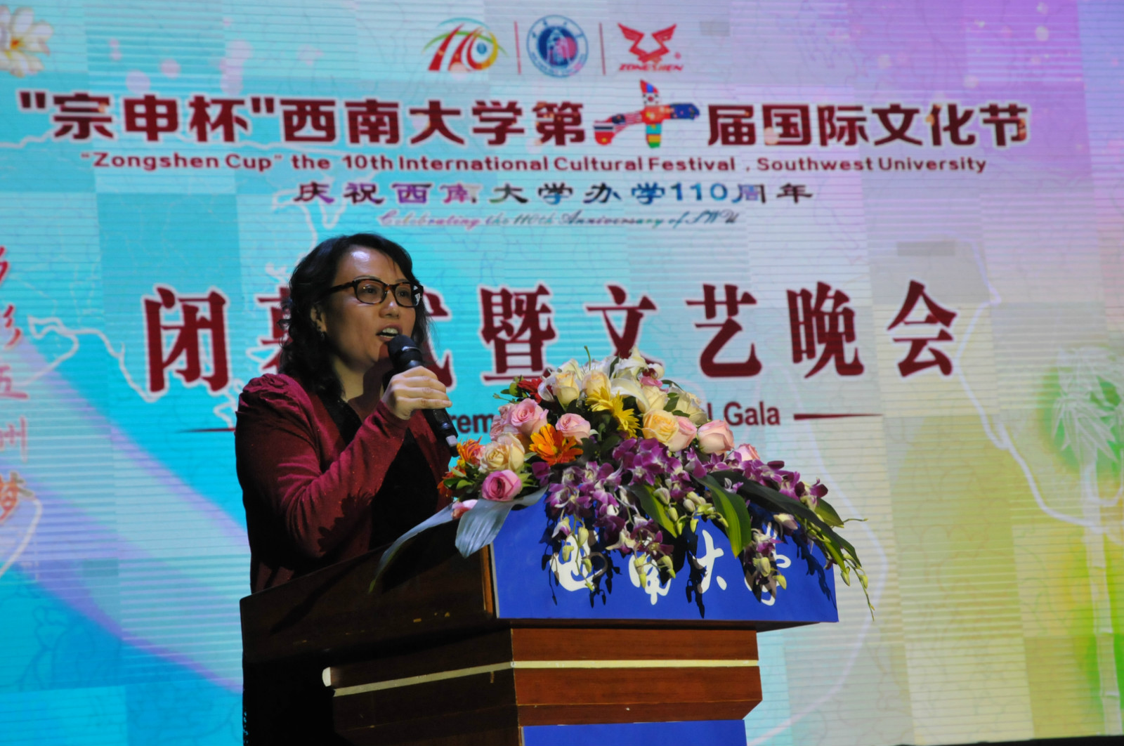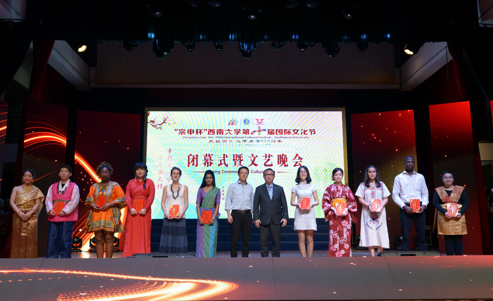 4月16日晚,“宗申杯”bevictor1946韦德官网第十届国际文化节在光大礼堂盛大闭幕。泰国驻成都总领事馆总领事郭梅特先生,重庆市教育委员会国际合作与交流处副处长李斌,重庆市公安局出入境管理局、北碚区公安局等单位领导到场祝贺,重庆13所高校以及公司相关职能部门领导应邀出席了闭幕式。