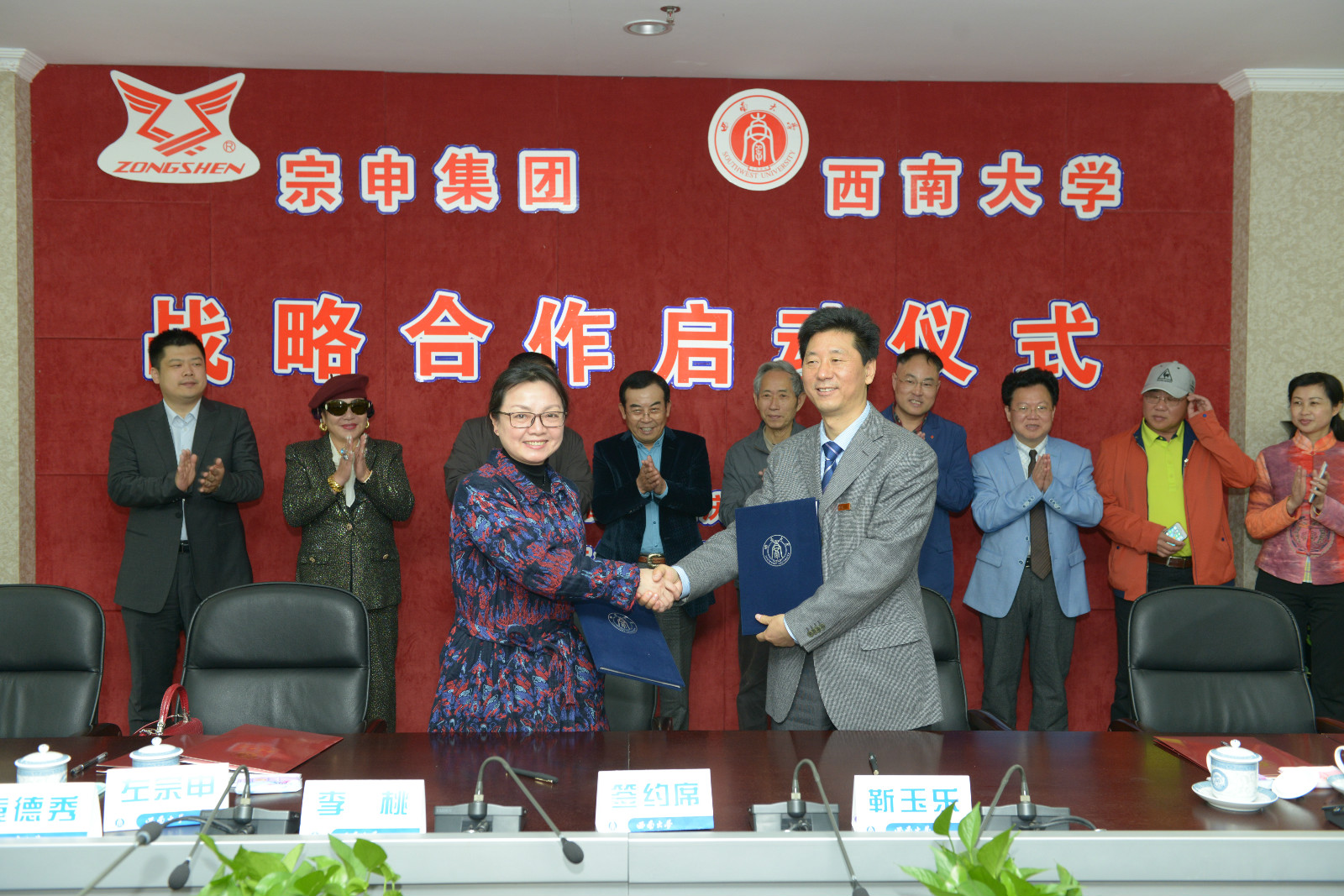 3月31日,公司与宗申集团战略合作签约仪式在行署楼举行。合作内容包括宗申集团在公司设立来华职工“宗申奖学金”,赞助即将举行的第十届国际文化节等。宗申产业集团有限公司董事长兼总裁左宗申,常务副总裁、首席投资官李耀,副总裁李桃,集团总监袁德秀,重庆宗申事业发展有限公司董事长陈亿和公司董事长张卫国、副董事长靳玉乐出席仪式。