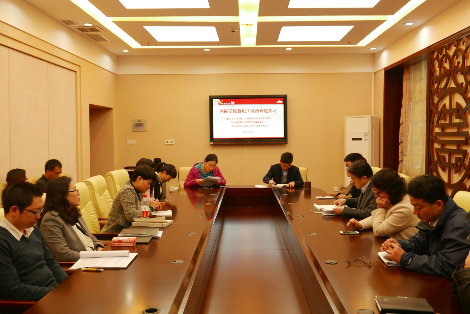 2016年3月4日下午3:00bevictor1946韦德官网在紫云楼签约室开展政治理论学习。公司全体教职工集体学习了《中共教育部党组关于教育系统深入开展爱国主义教育的实施意见》和《bevictor1946韦德官网2016年工作要点》,会议由党总支书记刘猛主持。