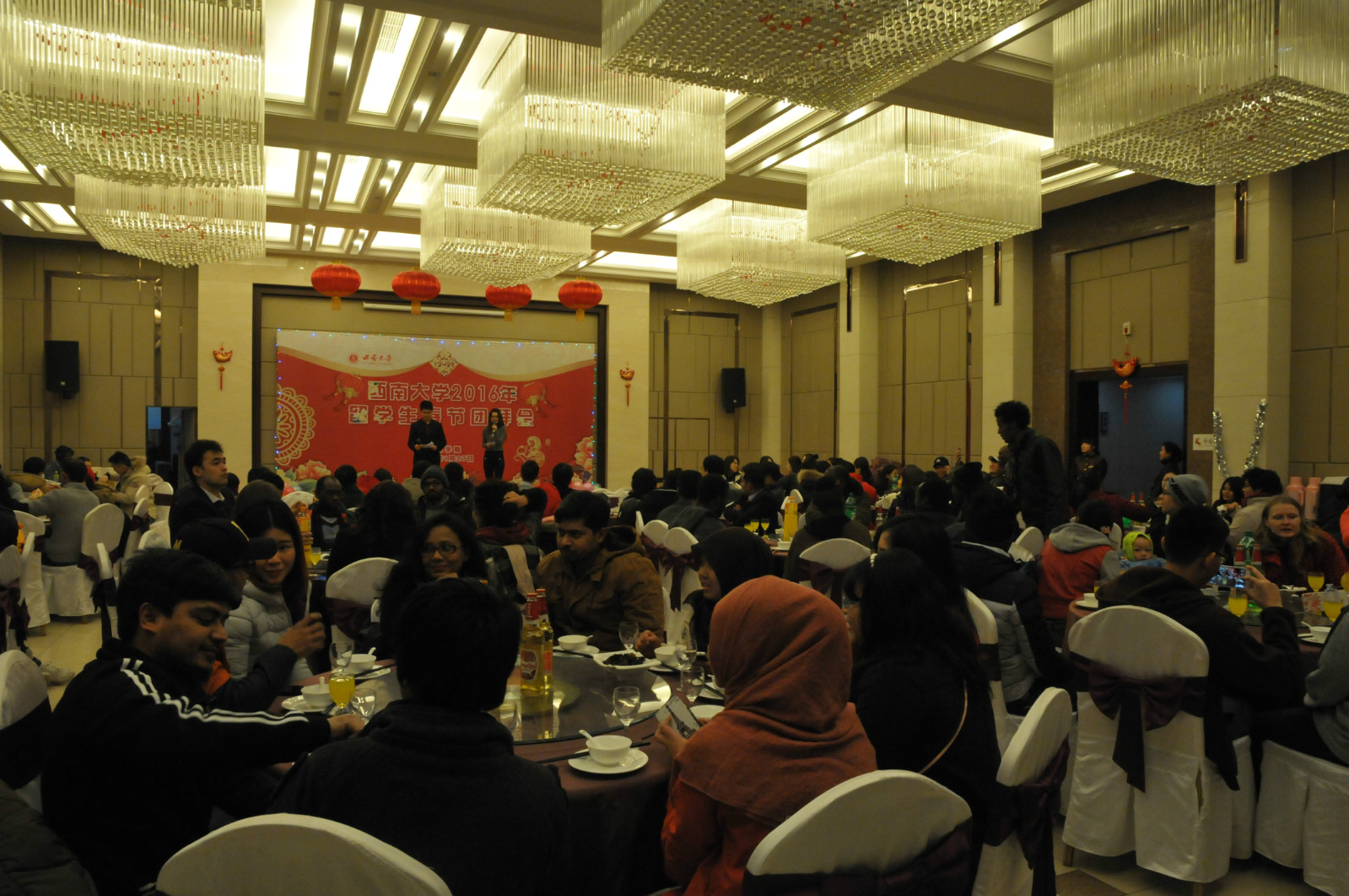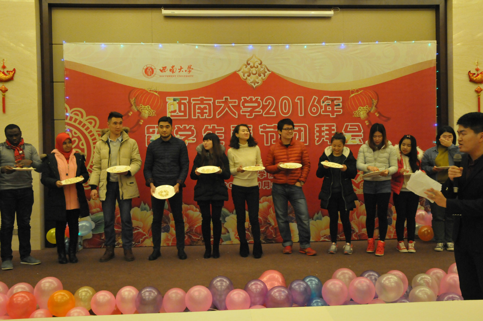 灵羊奋蹄抒豪志,金猴捷足展宏图。1月27日,桂圆宾馆张灯结彩,洋溢着一派喜庆气氛。bevictor1946韦德官网2016年职工春节团拜会在此隆重举行。bevictor1946韦德官网王静经理,刘猛书记,李航副经理和教职员工代表与来自哈萨克斯坦、泰国、捷克、坦桑尼亚、墨西哥、马尔代夫、阿根廷等国的100余名职工欢聚一堂,喜迎猴年新春佳节,互祝新年快乐