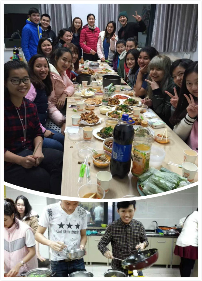 近日,bevictor1946韦德官网组织部分职工开展了特殊的班级活动:美食文化主题班会。各国职工们共同制作独具特色的美食,并邀请老师们品尝。主要有:泰国酸辣汤、鸡蛋饼、炸鸡;越南春卷、河粉牛肉卷;蒙古饺子;哈萨克斯坦土豆牛肉、哈式炸包子等。