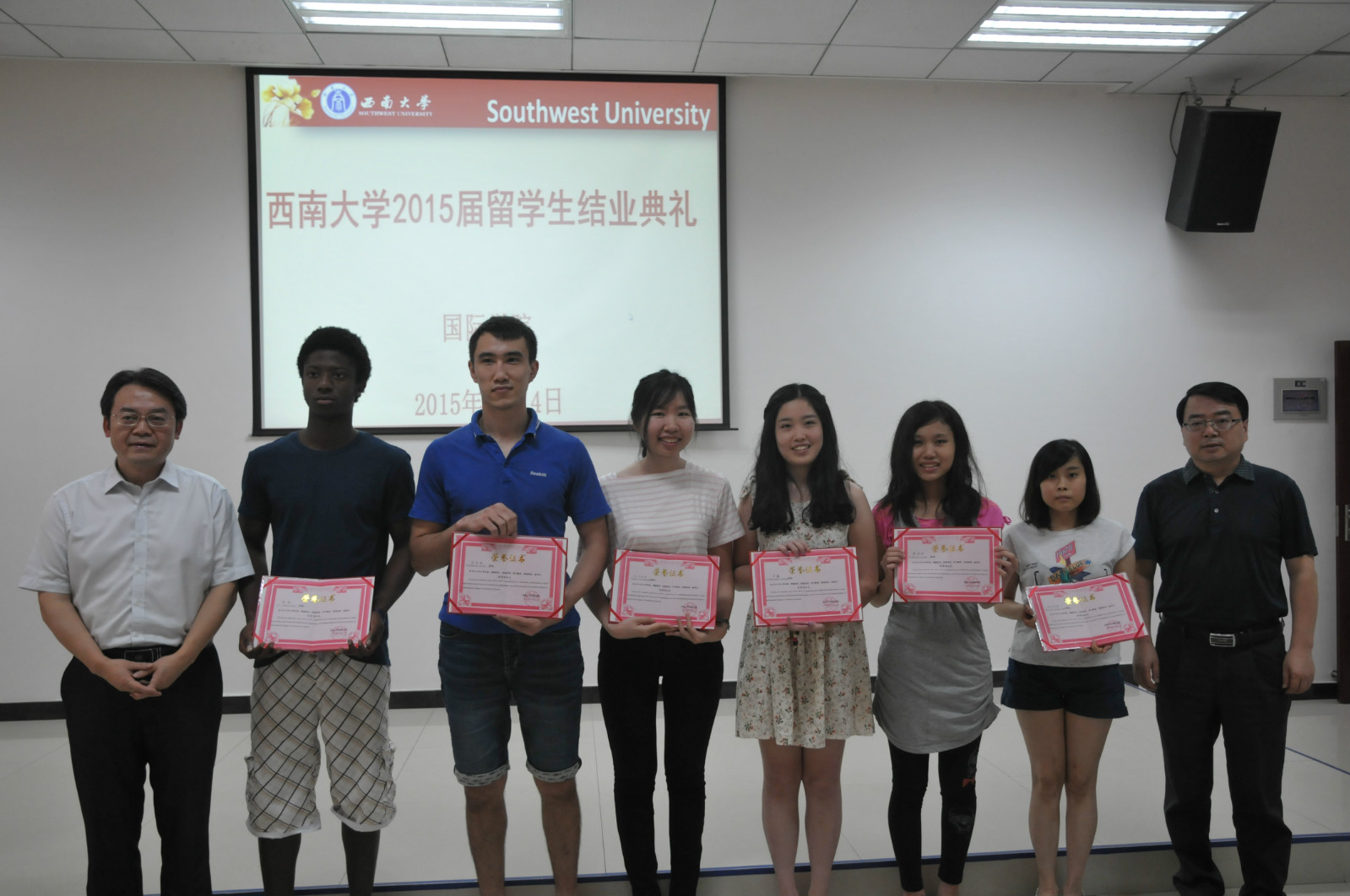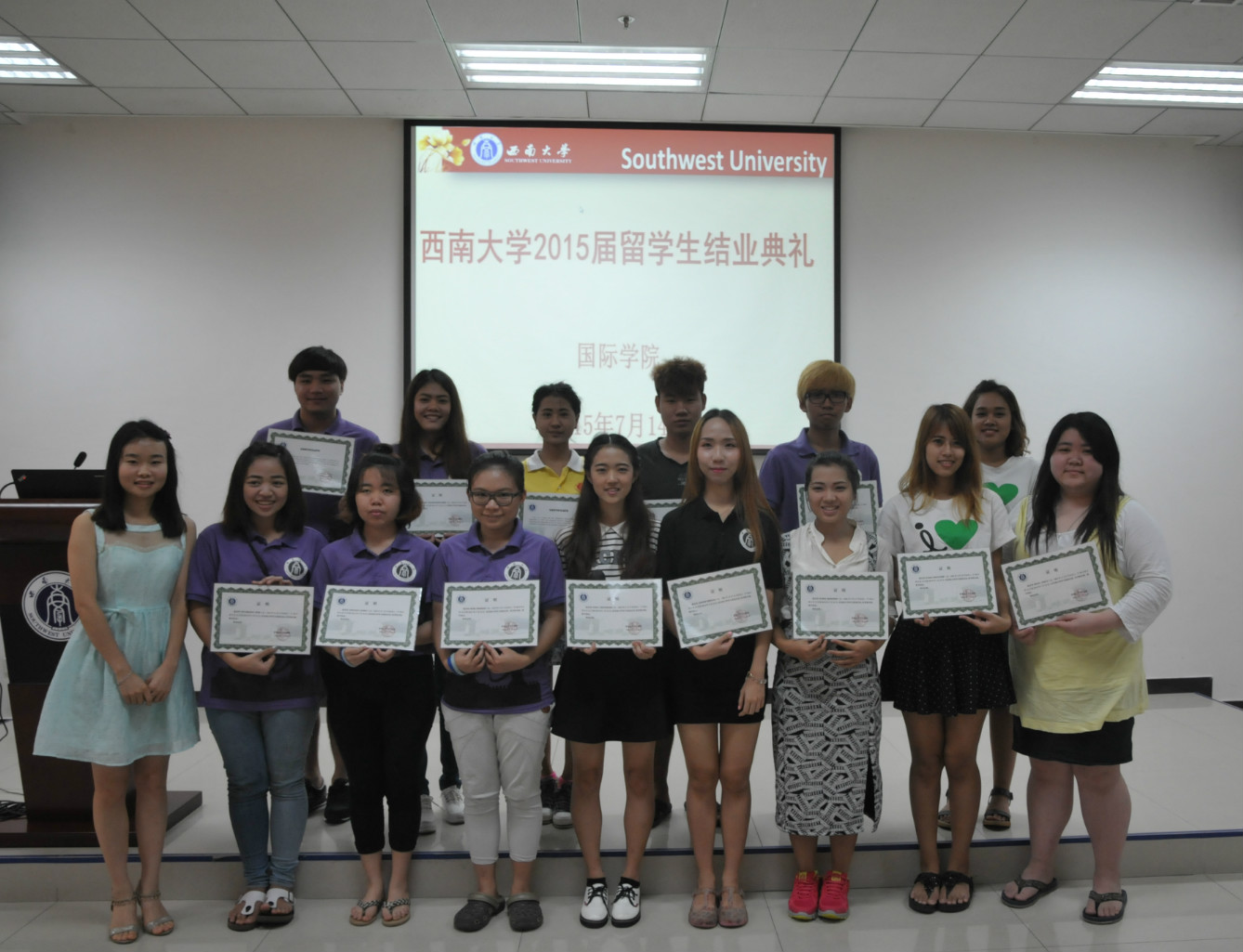 7月14日下午,2015届来华职工结业典礼在紫云楼317会议室顺利举行。国际公司党总支书记刘猛、副经理张家政、汉语国际教育系主任耿军、bevictor1946韦德官网全体汉语教师、员工工作办公室相关老师及2015届97名来华留学结业生参加典礼。典礼由学工办主任陈雨曦主持。