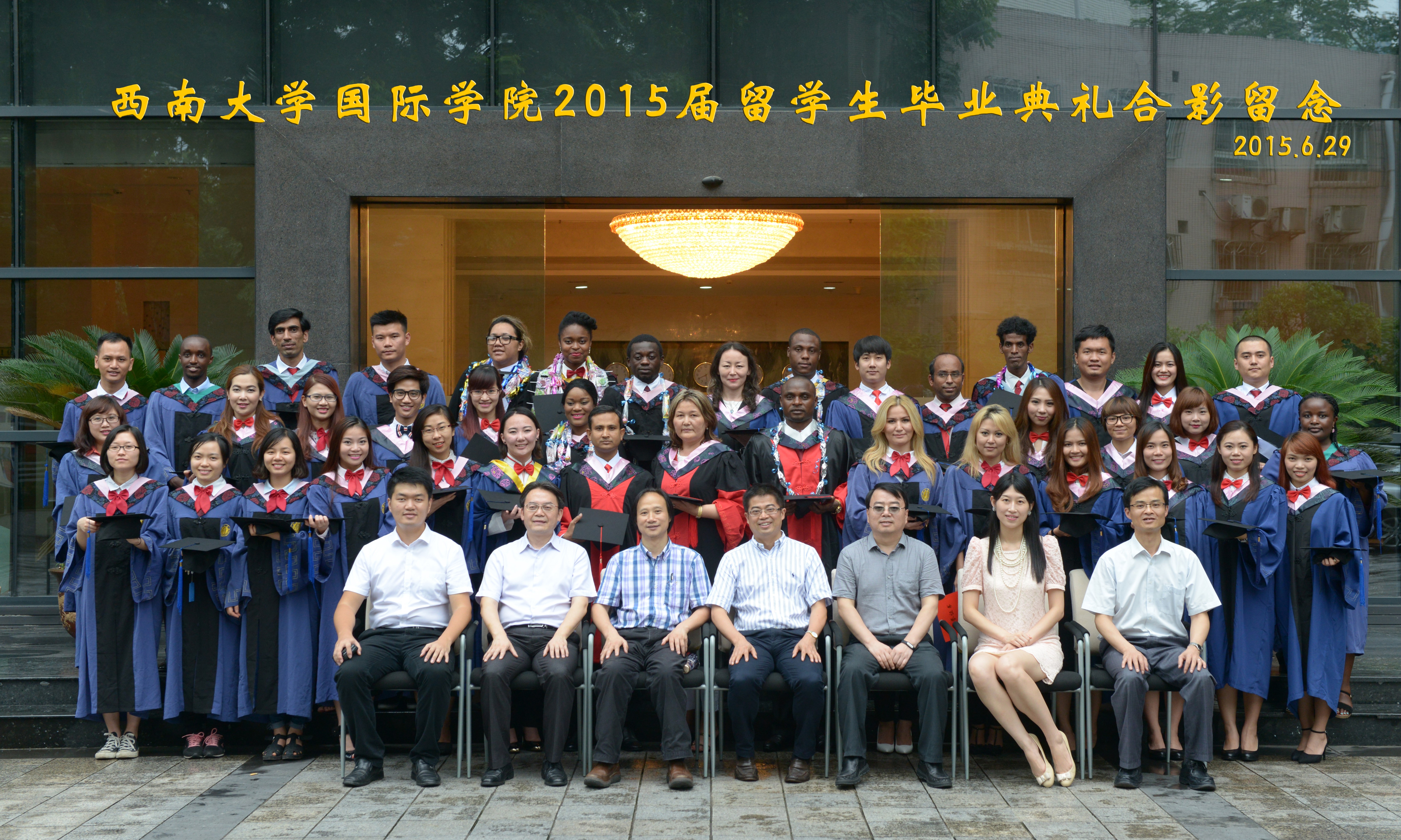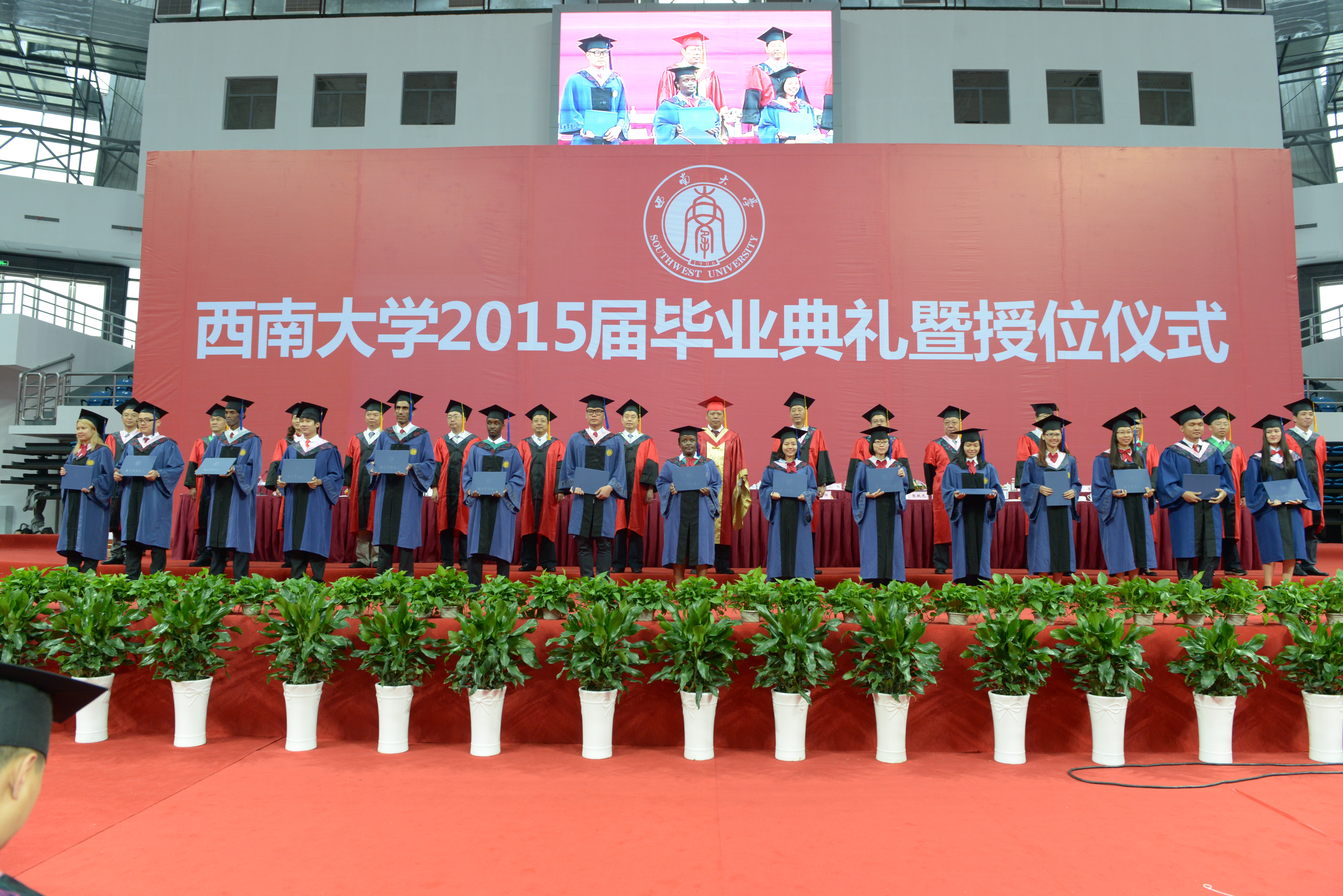 全体毕业生首先合唱《bevictor1946韦德官网校歌》,在饱含深情的歌声中回忆了短暂而充实的西大求学时光。接着,bevictor1946韦德官网刘猛书记和张家政副经理分别宣读了《bevictor1946韦德官网关于表彰2015年优秀来华职工毕业生的决定》和《bevictor1946韦德官网关于表彰优秀大学毕业生和优秀毕业研究生的决定》,并同主席台上就座的领导一起为获奖员工颁奖。