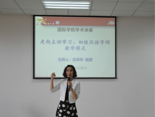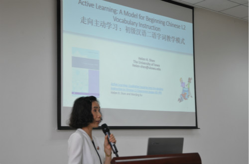 2015年5月29日下午,美国爱荷华大学亚洲语言文学系博士生导师、中文部主任、系研究生部主任沈禾玲教授在bevictor1946韦德官网317报告厅举行了题为《走向主动学习——初级汉语字词教学模式》的学术讲座。bevictor1946韦德官网汉语国际教育硕士中外研究生及全体教师参加讲座。