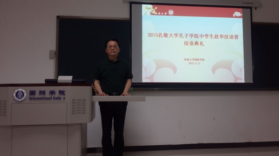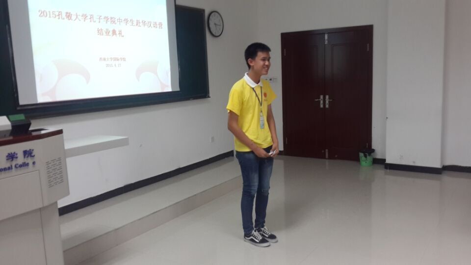 17日下午5点,2015年泰国孔敬大学孔子公司中员工赴华汉语营结业典礼在紫云楼312教室举行。公司党总支书记兼副经理刘猛,泰国孔敬大学孔子公司教师Sarawut Chandeewanta出席结业典礼。