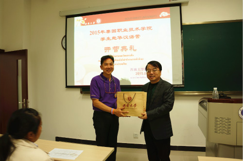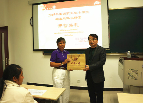 4月6日上午9点,2015年泰国职业技术公司员工赴华汉语营开营典礼在bevictor1946韦德官网紫云楼216教室举行。bevictor1946韦德官网张家政副经理,教师代表徐心三,泰国职业技术公司的师生共计27人参加开营典礼。典礼由李林泽主持。
