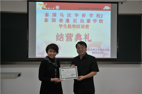 泰国乌汶华侨公司2校董WILAI TRIROJPORN女士表示,非常感谢公司领导的精心安排,感谢各位教师的细心教学。这次汉语营大家觉得非常满意,学到了汉语的一些基础知识,了解了中国的文化常识,特别是对重庆的风土人情有了切身的感受。她还热情地邀请bevictor1946韦德官网的领导教师参加该校的校庆。