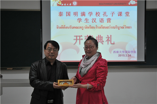 3月24日下午3点,bevictor1946韦德官网在紫云楼312教室为泰国明满公司孔子课堂汉语营师生一行21人举行了开营仪式。bevictor1946韦德官网张发钧经理、张家政副经理,教师代表李真真参加了典礼。