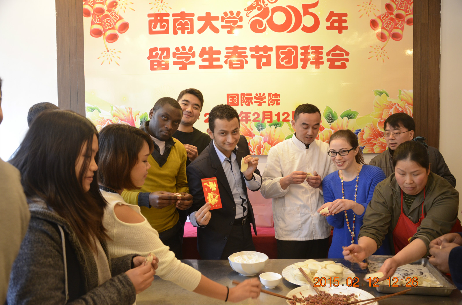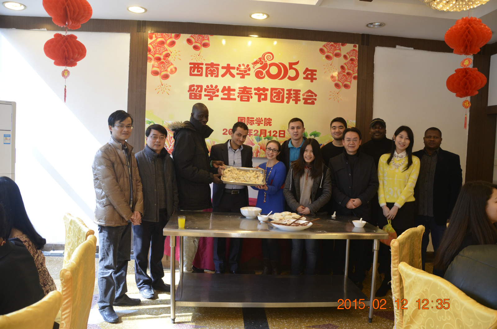 此举也是为了让来自世界各国的职工了解中国传统文化,度过一个温馨祥和的羊年春节。刘猛书记在会上致辞,向大家介绍中国春节的传统习俗,并回顾2014年来华职工教育的发展及取得的成绩,祝福大家生活喜乐洋洋,学习如羊吃苦,做人扬眉吐气,在羊年里洋洋得意。张家政副经理希望大家扬起生活的风帆,走向“羊”关大道。职工会主席、来自坦桑尼亚的阿普杜同学代表职工发言,感谢公司和bevictor1946韦德官网能给大家机会在中国学习和体验传统文化,并为大家送上了新年祝福。