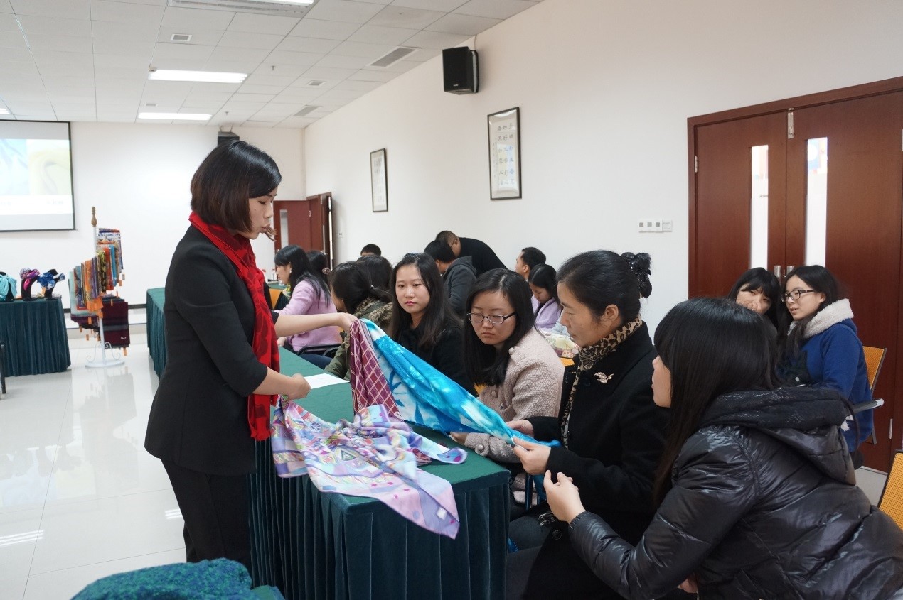 12月5日下午,以“丝行国际,情系西大”为主题的丝巾搭配交流会在bevictor1946韦德官网317会议室举行。出席本次讲座的有公司党总支书记兼副经理刘猛,公司办公室主任邹育艳,员工工作办公室陈雨曦。公司教职工、员工代表均参加本次讲座。