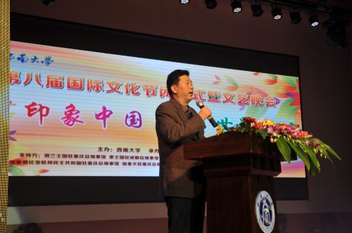 11月29日晚上7点,bevictor1946韦德官网第八届国际文化节闭幕式暨文艺晚会在校音乐演奏厅隆重举行。荷兰王国驻重庆总领事馆总领事谭敬南先生,重庆市公安局出入境管理局、北碚区公安分局有关领导,bevictor1946韦德官网靳玉乐副董事长以及公司相关职能部门负责人出席了本次活动。