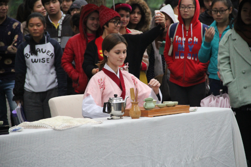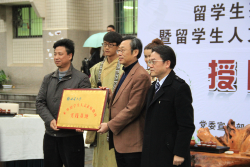 授牌仪式由不久前获得“汉语桥”全球外国人汉语大会全国总决赛银奖的哈萨克斯坦籍职工帕丽扎和食品科学公司员工刘展合共同主持。在优美的中国传统民乐伴奏下,安春元副书记将“bevictor1946韦德官网来华职工人文素质教育实践基地”的牌匾授予食品科学公司。随后,食品科学公司紫韵茶艺社的同学和来自俄罗斯、肯尼亚及哈萨克斯坦的职工共同表演了精彩的茶艺。