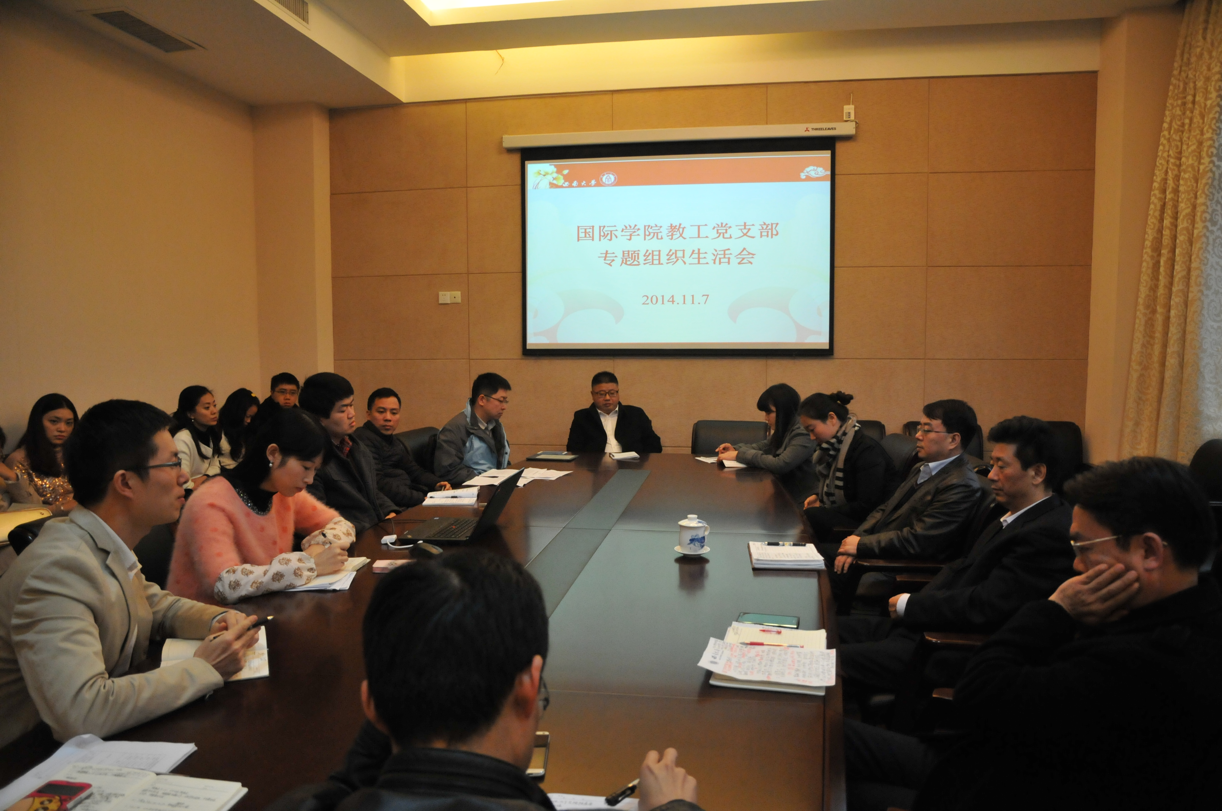 2014年11月7日,bevictor1946韦德官网全体教职工党员在紫云楼310会议室召开专题组织生活会。党员同志们结合本职工作,就如何发挥党员的先锋模范作用,为公司建设和发展作贡献这一议题进行了热烈的发言和讨论。副董事长靳玉乐应邀出席此次组织生活会。