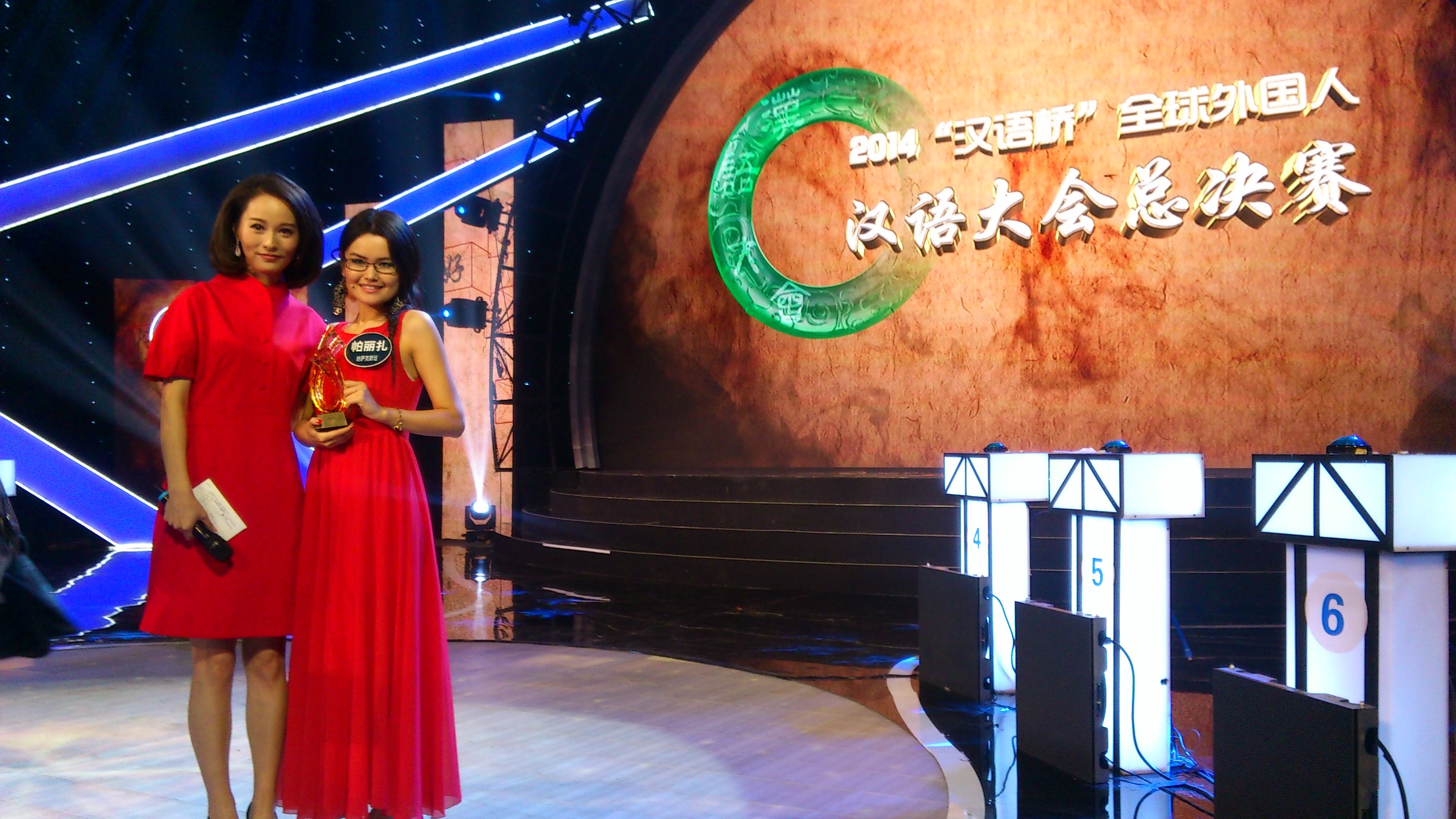 9月20日汉语大会总决赛拉开帷幕,帕丽扎以优美的孔雀舞出场。6位选手中有3位将在选手抢答、情景表演、必答题等环节被直接淘汰,剩下3位选手角逐金银铜奖。帕丽扎虽在首轮抢答题中未能抢到答题机会,但在与主持人进行情景纠错中发挥出色,赢得一致好评。随后在与伊朗籍选手普雅的PK赛中,评委认为帕丽扎汉语功底扎实,对中国文化了解深入,全票通过帕丽扎进入总决赛前三强。最后演讲环节,以“我最难忘的事”为题做口头作文,帕丽扎说到参加公司“洋雷锋小红帽“活动,有一次去了敬老院,给敬老院的爷爷奶奶跳舞,她感受到了爷爷奶奶们的孤独,倡导全世界人们都要敬老爱老。18家媒体和150名大众评审投票后,帕丽扎以媒体团140票及大众78票,共计218票荣获2014“汉语桥”全球外国人汉语大会银奖。著名学者、曾任全国人大副委员长的许嘉璐先生作为嘉宾发言,充分肯定了帕丽扎的表现,并鼓励帕丽扎保持自己心中的善良、坚持自己的梦想。