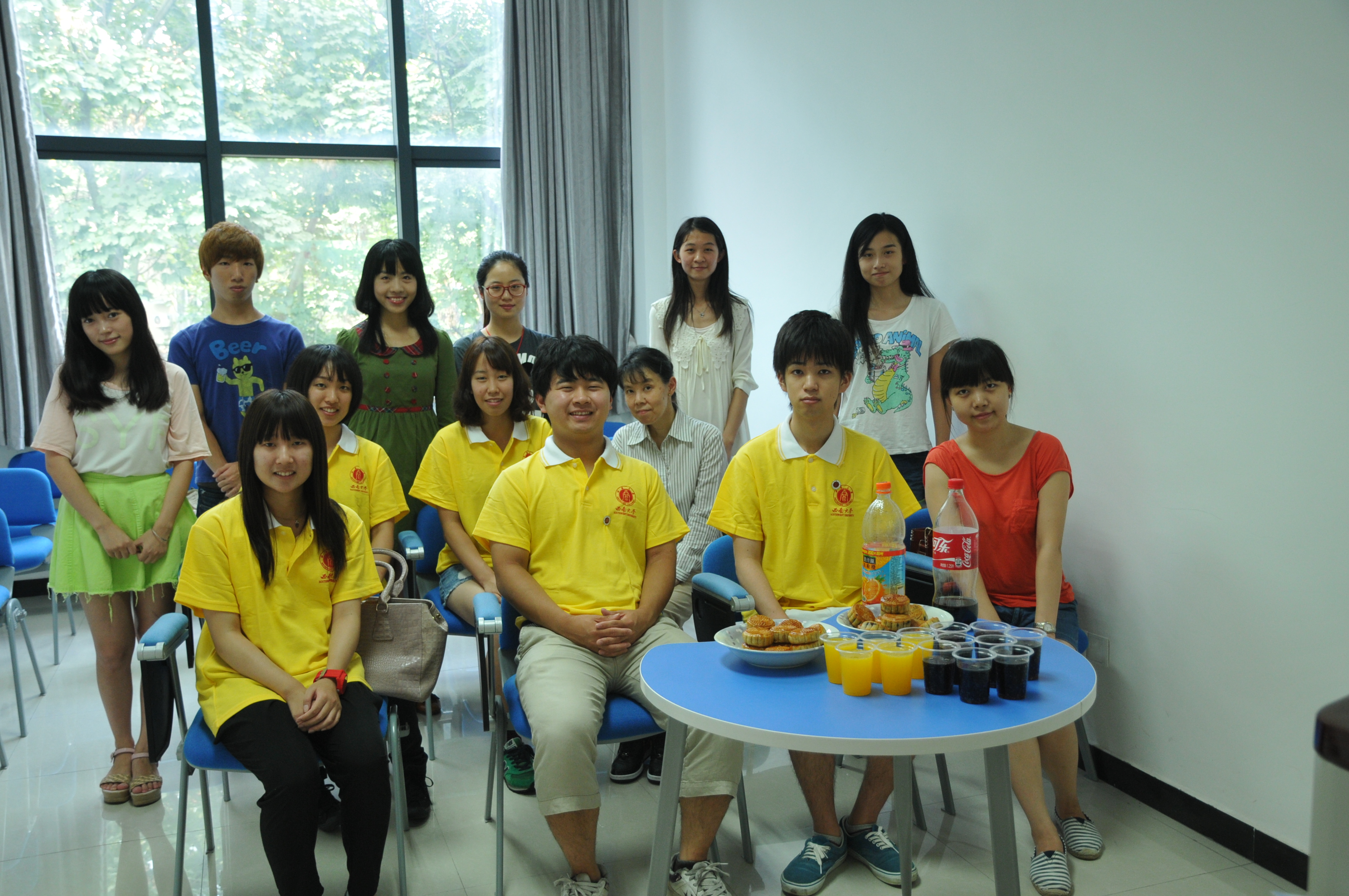 8日下午,项目师生和中国语伴在紫云楼220教室开展了中秋节文化交流会。双方观看了制作精美的“中秋节在中国”PPT,欣赏了中国传统舞视频《水调歌头》,随后品尝了月饼和饮料,并在欢乐的气氛中进行了猜词互动游戏。领队饭岛典子女士还和大家分享了中秋节在日本的情况,以及她对中国中秋节的感受。中秋团圆夜,大家品尝了本地特色美食——重庆火锅。