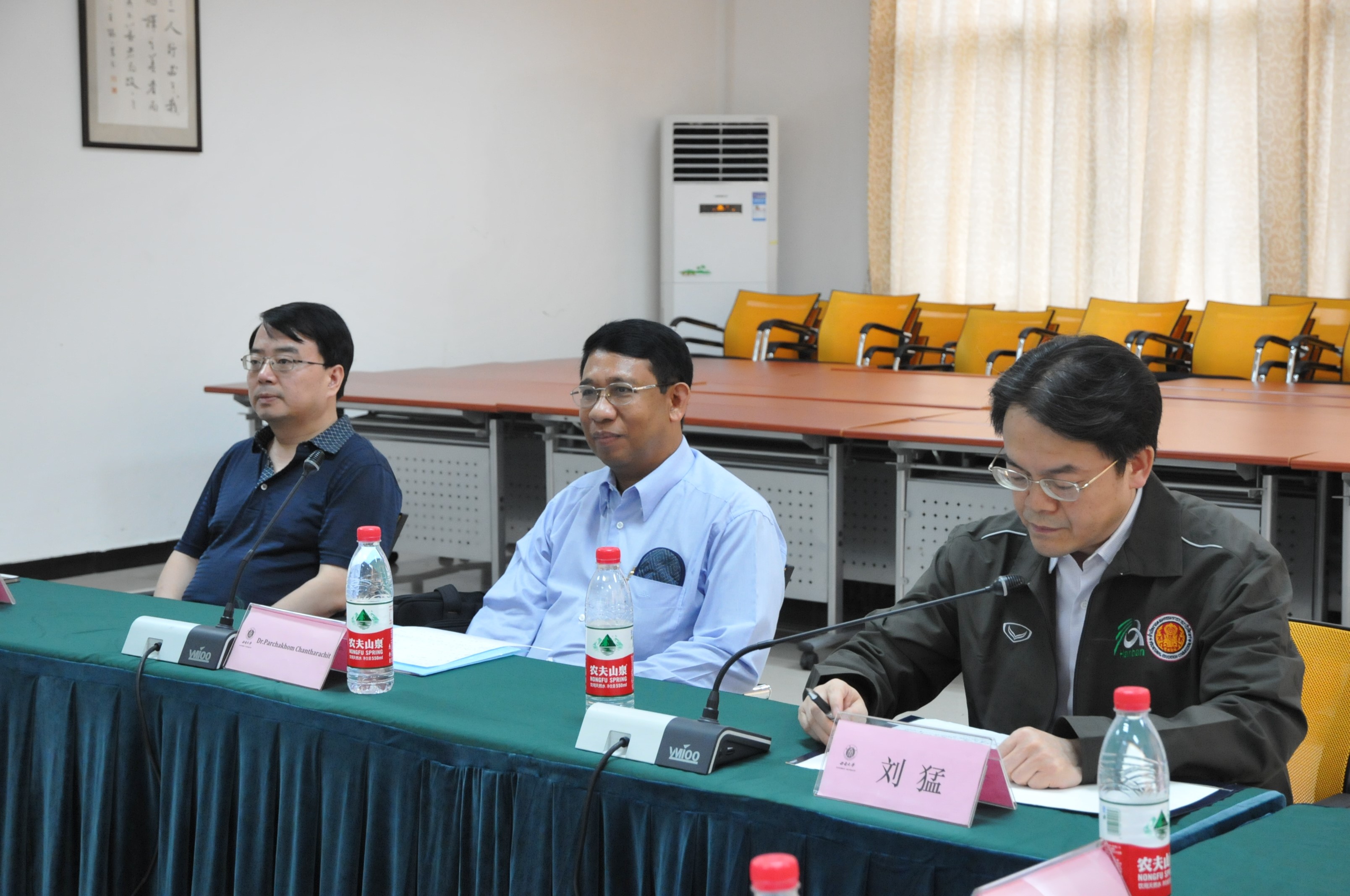 泰方代表团团长 Parchakhom Chantharachit博士致感谢词。他热情地回顾了四天的行程,认真总结了考察交流的收获。对公司领导和教师给予高度评价,同时希望双方在未来能有更多的合作。
