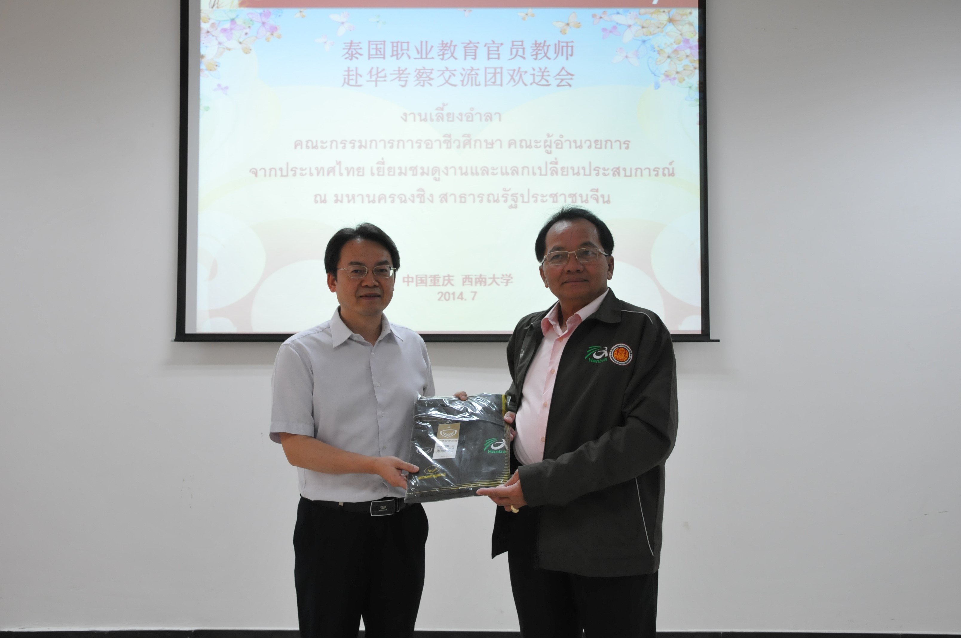 2014年7月19日,泰国职教委赴华考察交流团欢送会在bevictor1946韦德官网317会议室举行。公司党总支书记兼副经理刘猛、副经理张家政以及泰方赴华考察团29人出席欢送会。
