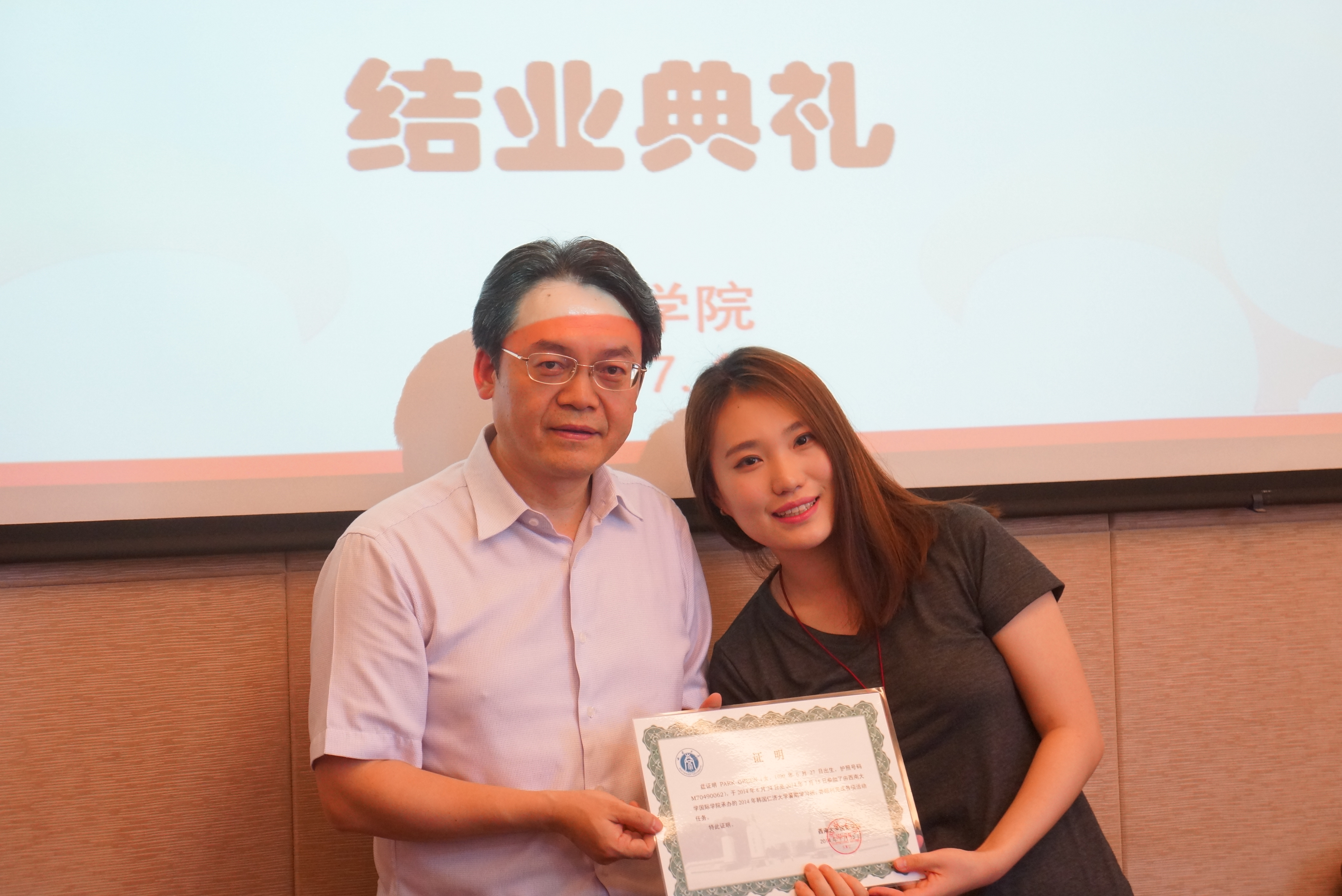 韩国员工代表金奎铉用流利的中文发言,总结了在三周学习生活里的收获和成长,同时表达了对各位老师的感激之情。随后中国语伴代表李雪薇发言,表达了对即将踏上归程的韩国朋友们的不舍之情。