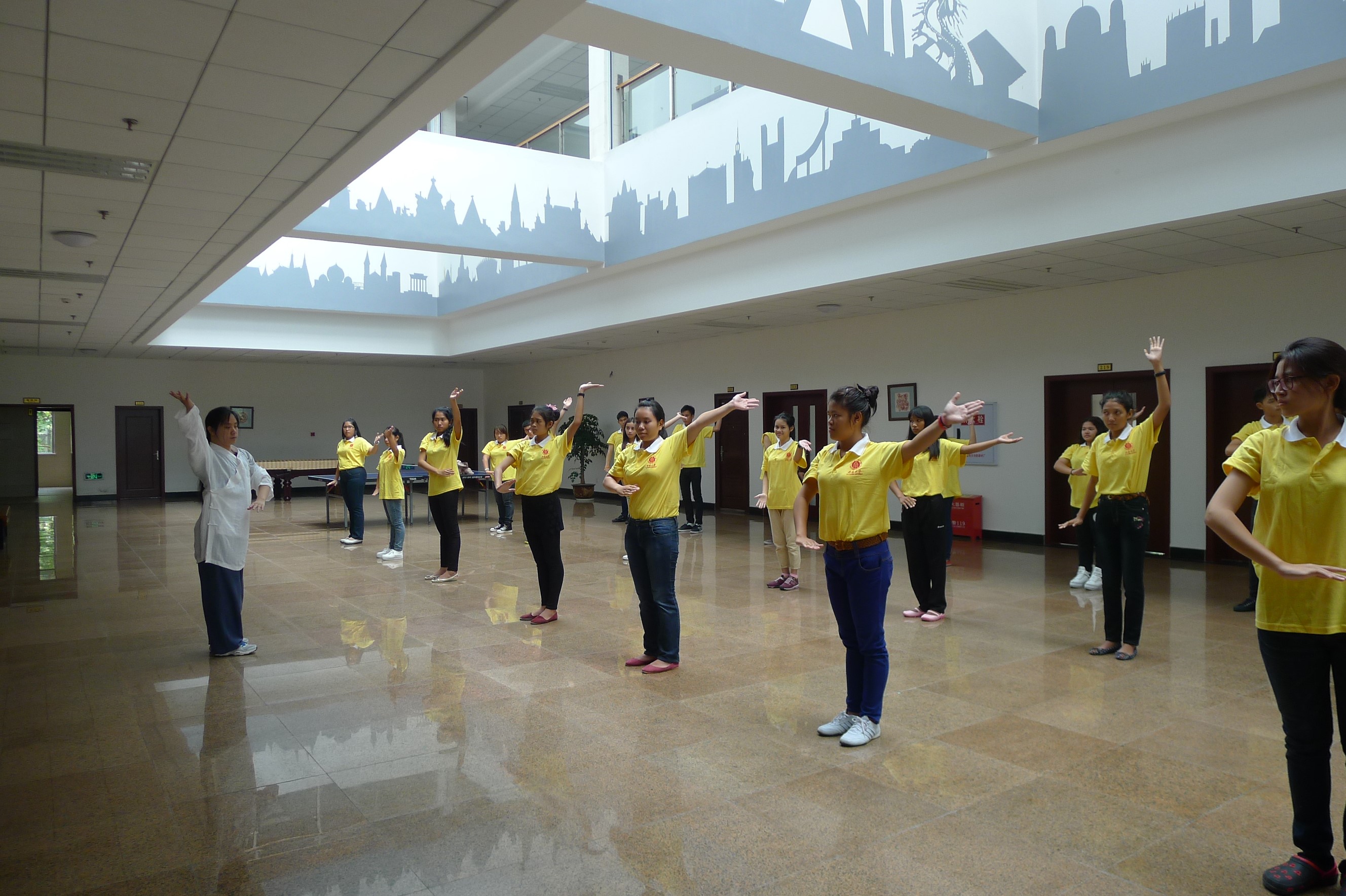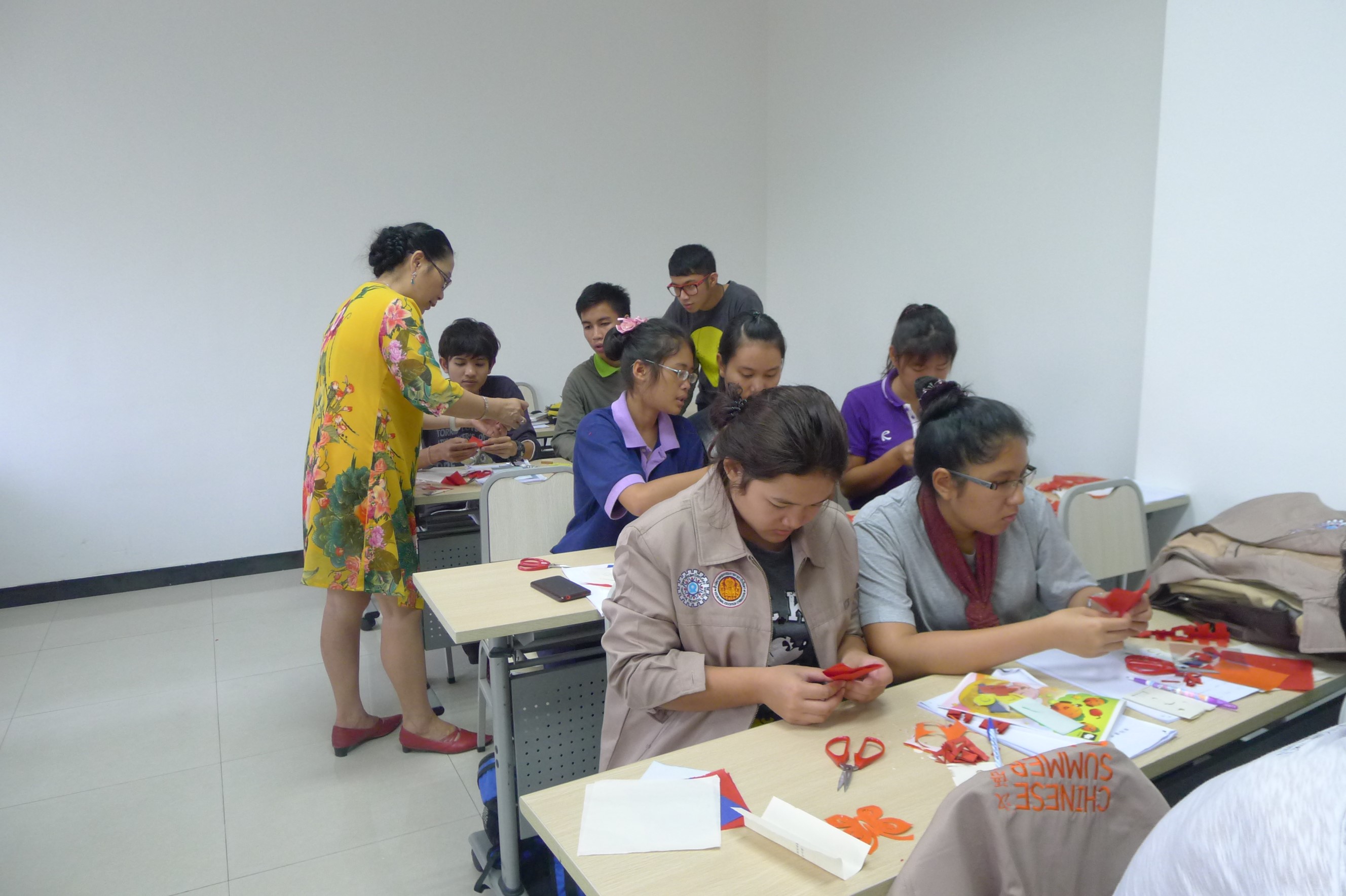 6月18到19日,太极拳课上,一个个跟着老师比划的有模有样,生怕错过老师的哪一个动作,他们认真的表现也得到了老师的赞扬。剪纸课上,员工们挥舞着手中的剪刀跟着老师剪下一幅幅生动的图案,下课了都还围着老师请教各式花样。中文歌曲的课堂上,员工们仔细地听着老师对歌曲的讲解,合着动听民族音乐唱出他们心中缓缓爬起的半个月亮。