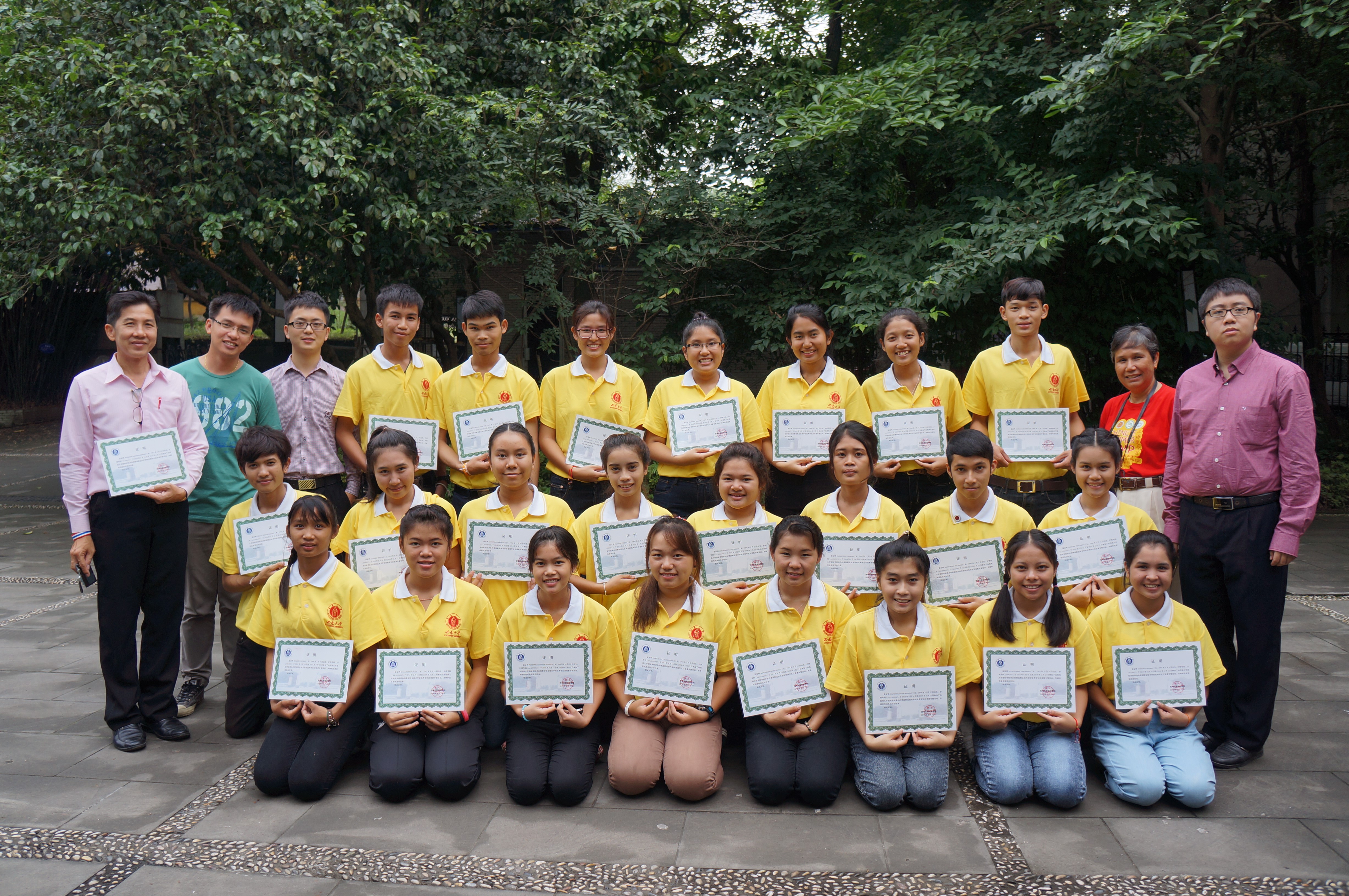 6月21日,结业典礼上,bevictor1946韦德官网教师代表徐心三老师,对本次汉语体验营做了总结,表扬并祝福在坐的员工,希望他们的汉语能更上一层楼。泰方老师用泰国古话“交心之友,千杯不醉”的话语表达了对bevictor1946韦德官网刘猛副经理和张家政副经理的尊敬和喜爱,同时还表达了对bevictor1946韦德官网全体教职员工的的感谢,并希望跟公司有更多的合作。最后,员工们和与会老师纷纷合影留念。