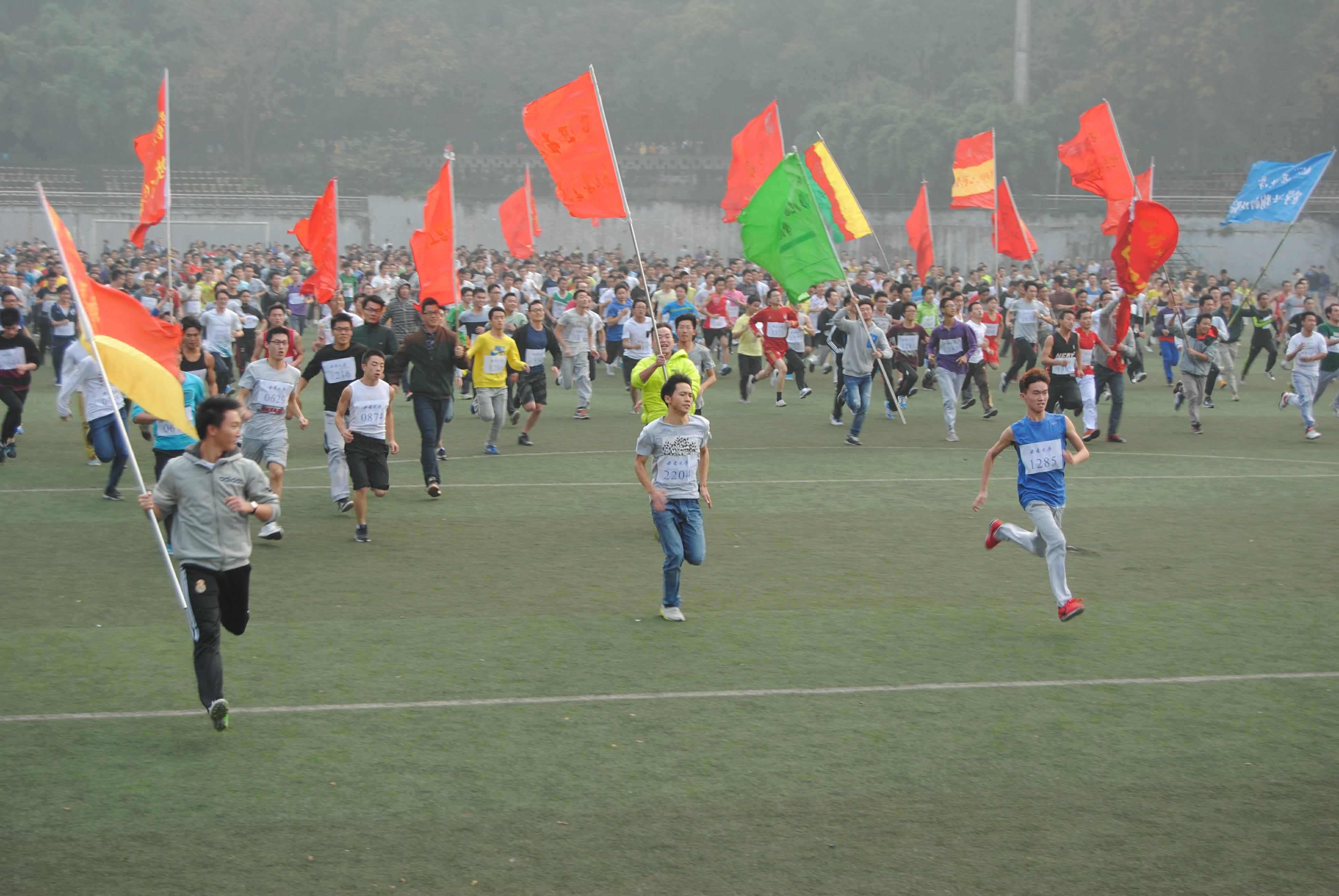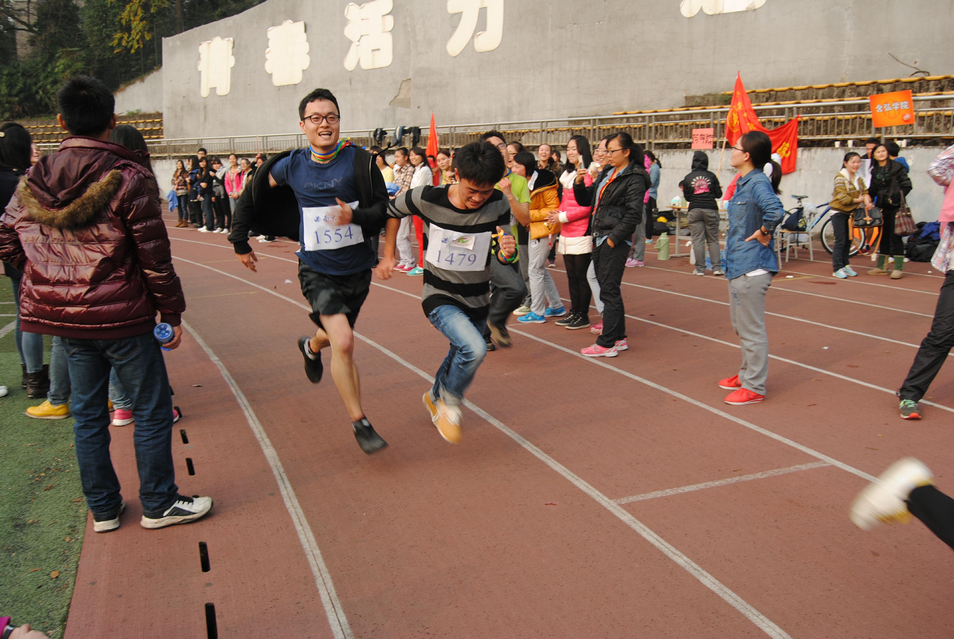 下午2:30,随着主裁判的一声枪响,运动员如利剑出鞘的速度立刻点燃了现场如火的热情,青春的活力与自信涨满了整个校园。跑道旁啦啦队的加油呐喊声此起彼伏,现场的气氛热辣如重庆火锅。公司健儿本着友谊第一,比赛第二的宗旨,奋勇争先,在一片热烈的掌声中,日本职工小林加奈第七个到达终点,公司另外2位选手赵岩和薄靖虽然身体不适,却最终坚持到了终点,他们的意志和精神依然赢得了大家的尊重和喝彩。由公司汉语国际教育硕士中国班员工组成的小组服务队全程分段设立服务点,贴心的服务和细致的照顾一直陪伴选手到终点。整个赛事中,选手们表现出来的运动活力之美和永不放弃的精神深深感染了现场的每一个人。