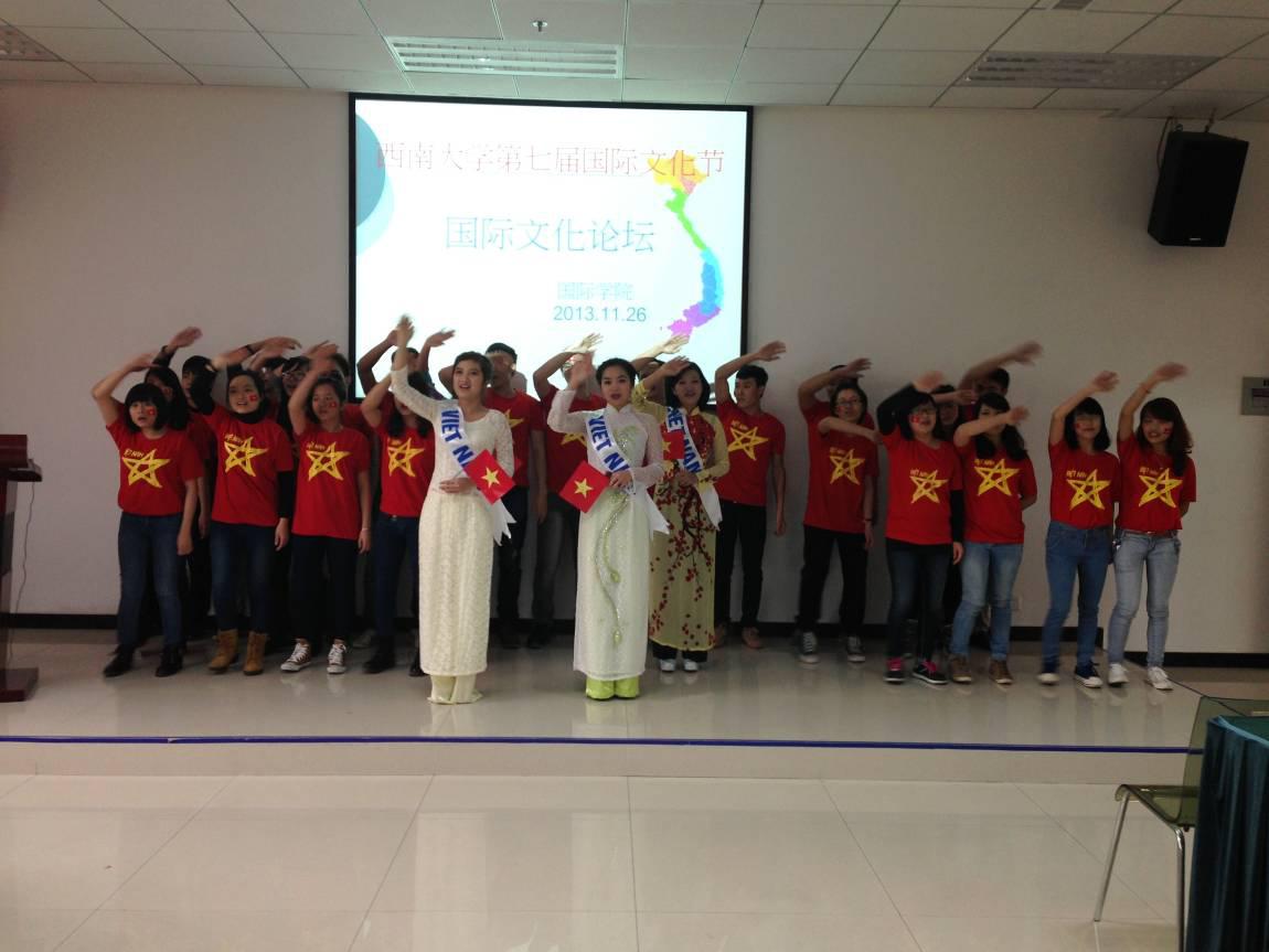 第一场名为“美丽•越南”。此次论坛现场人声鼎沸,活动内容新颖,形式多样。首先由越南主持人介绍了越南的基本情况,包括地理位置、重要城市、经济、文化、美食、民俗、货币等。通过各种内容展示,把现场的同学带到了一个神秘而又新奇的国度,给台下的观众带来一波波的强烈视觉冲击;彰显青春魅力和民族特色的服饰表演把论坛推向高潮。紧接着由bevictor1946韦德官网邱睿老师点评,她指出,文化的意义在于吸引,在于兴趣,而文化更重要的意义在于体验。随后,精彩的问答轮番上演,中越员工互动环节以问答的形式展开。这个环节让我们看到了作为越南职工展示自己国家风采的愿望,同时我们也看到中国员工了解世界、展现自我的愿望。