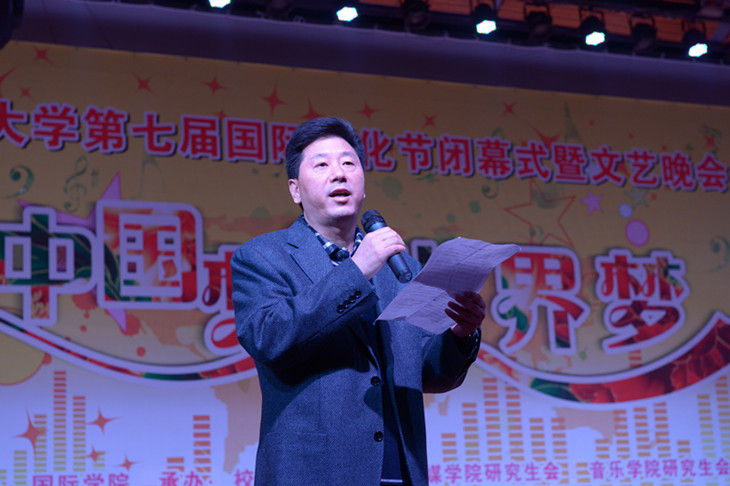 闭幕式在一曲清新婉约的扇子舞《茉莉花》中拉开帷幕,靳董事长首先上台致辞。他说道,在为期一周的国际文化节中,通过举办国际文化论坛、趣味体育比赛、各国文化展、职工摄影、剪纸和书法作品展、各国美食品尝等活动,为初冬的校园平添了几分生动与鲜活,让埋头苦读的同学们感受到世界的召唤,更拉近了中外员工的友谊。他希望国际文化节能够成为bevictor1946韦德官网的传统,一年一年传承下去,生生不息,成为职工了解中国、中国员工放眼世界的广阔平台。最后,靳董事长祝贺本届国际文化节成功闭幕。