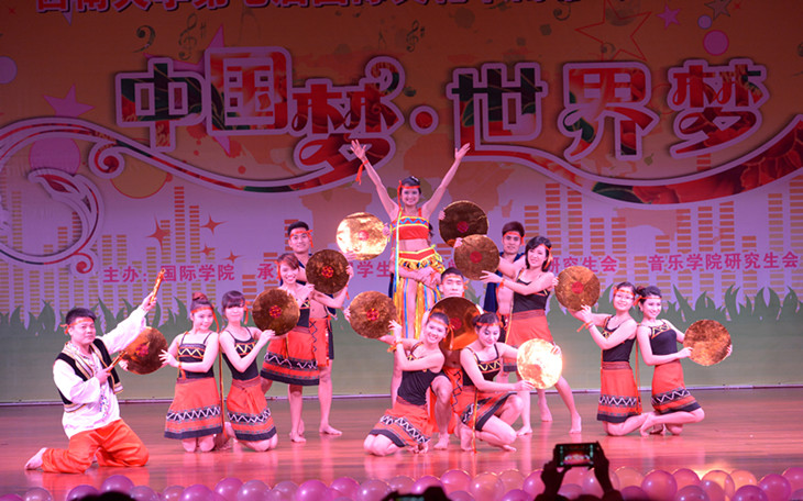 颁奖环节结束后,文艺晚会正式开始。本场晚会节目精彩纷呈,职工们个个拿出看家本领,各显神通,为我们奉上了一场别开生面的视听盛宴。不仅有越南、哈萨克斯坦、柬埔寨、蒙古、非洲传统舞蹈表演,也有泰国、俄罗斯、美国等各国歌曲串烧。泰国员工罗俊勇带来的京剧《定军山》选段博得现场观众声声叫好。来自埃及、泰国和越南的职工们上演了一台多国音乐剧《那些年》,带我们领略各国风情的同时,也让我们了解到职工们在bevictor1946韦德官网收获的友谊与温情。各国职工们还精心编排了一出小品《真假状元》,引得现场观众阵阵欢笑。在南太平洋国舞蹈节目中,来自汤加、萨摩亚的职工舞蹈演员们频频下台与观众互动,活跃现场气氛,把晚会推向了高潮。本届国际文化节受到社会各界广泛关注,更得到各兄弟院校的鼎力支持。来自西大附中的熊桓小朋友带来的川剧变脸表演以及北碚活力工场舞团Future Star Belly Dance的肚皮舞为晚会增色不少。华中师范大学的职工代表们更是远道而来,亲临晚会现场,不仅带来了精彩的节目,也加深了两校职工之间的互动与交流。