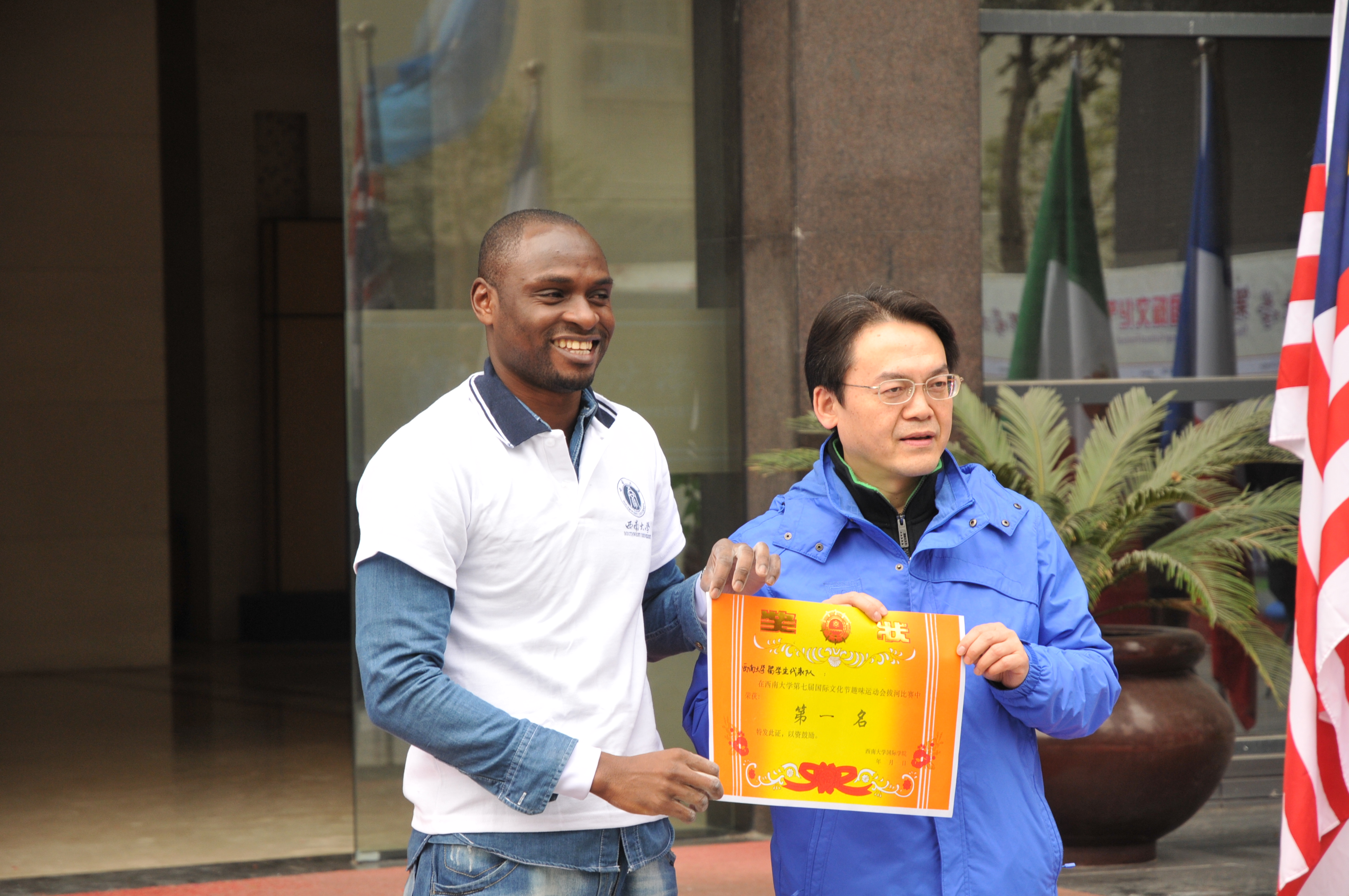 为促进职工愉悦身心,展示职工的蓬勃朝气和竞技热情,bevictor1946韦德官网于11月27日下午3点在紫云楼前举行职工趣味体育比赛活动。此次活动作为bevictor1946韦德官网第七届国际文化节系列活动之一,邀请到了来自重庆大学、重庆邮电大学和重庆师范大学的职工代表们共同参加,以期让留学重庆的外国员工们通过运动,加强文化交流与互动。