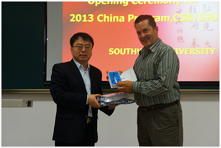 张经理对来自美国的师生表示了热烈的欢迎。他热情地介绍了重庆以及bevictor1946韦德官网,并对大家在bevictor1946韦德官网的学习和生活提出了亲切的希望,祝愿大家在bevictor1946韦德官网学习顺利、生活愉快。随即,领队教师Marsnik教授、教师代表王勇老师、员工代表也相继发言。最后,张经理代表bevictor1946韦德官网向领队教师赠送了礼物,大家合影留念,开学典礼顺利结束。