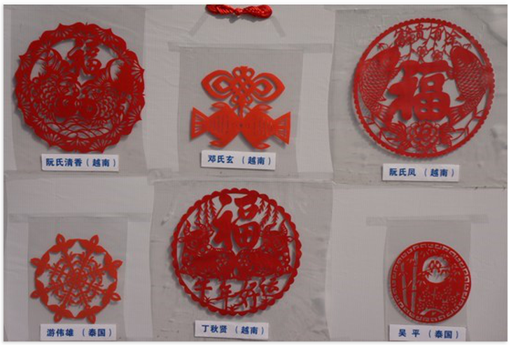 来自泰国、越南、哈萨克斯坦、韩国等四个国家的职工各显身手,纷纷拿出自己擅长的才艺。展示书法的同学,有的字体雄浑大气,有的风格秀丽婉约;有的摘录名人语录,有的书写自创对联。表演剪纸的同学,在老师的指导下,用一张红纸、一把剪刀,剪裁出精美喜庆的图案。还有很多同学带来精心编织出的中国结,折射出深厚的中国传统文化功底。