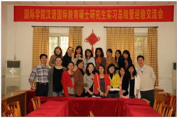 首先,2010级的19名同学分别对实习情况进行了汇报。大家认为经过5个月的教学实习,充分地感受到了作为一名教师的酸甜苦辣,体验到了作为教师的崇高和艰辛。在听课、备课、试讲、讲课、评课等一系列教学实践活动中,同学们主动发现问题、解决问题。表现出爱岗敬业、积极思考、追求上进的良好风貌。课堂教学之余,同学们还开展了丰富多彩的课外活动,积极传播中国文化。举办了诸如中国文化节、中国食品节、中国新年联欢会、汉语演讲比赛等校园活动。