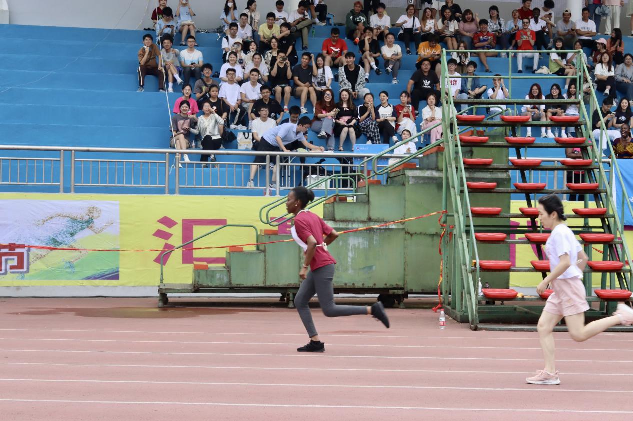 在女子100米和200米的短跑比赛中,短跑健儿们精神抖擞,步伐矫健,在呐喊与欢呼声中奋力奔跑,呈现出一场力与美的视觉盛宴。程若曦取得乙组女子100米第八名的佳绩,完美诠释了“运动健儿志高扬,巾帼岂将须眉让”。