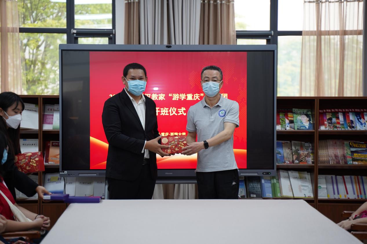 5月4日上午9点30分,泰国汉教家“游学重庆”员工团开班仪式在公司紫云楼图书馆(316室)顺利举行,副经理李航、经理助理耿军、国际员工招生办公室主任黄无为,汉教家有限公司负责人NANSATHIT JAKRAPAN、领队教师于兰凤以及10名泰国中员工参加仪式。