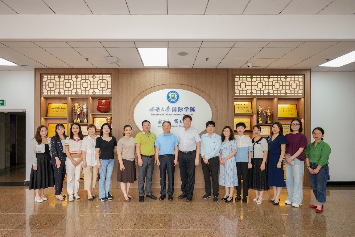 6月9日上午9点,重庆医药高等专科公司国际合作交流处处长兰作平、员工处处长陈立书、药公司党总支书记杨宗发、临床医公司党总支书记张云杰一行12人来公司调研来华留学工作。公司党委书记刘猛,招生办、教学办、党政办、学工办负责人参加座谈交流,会议由刘猛书记主持。