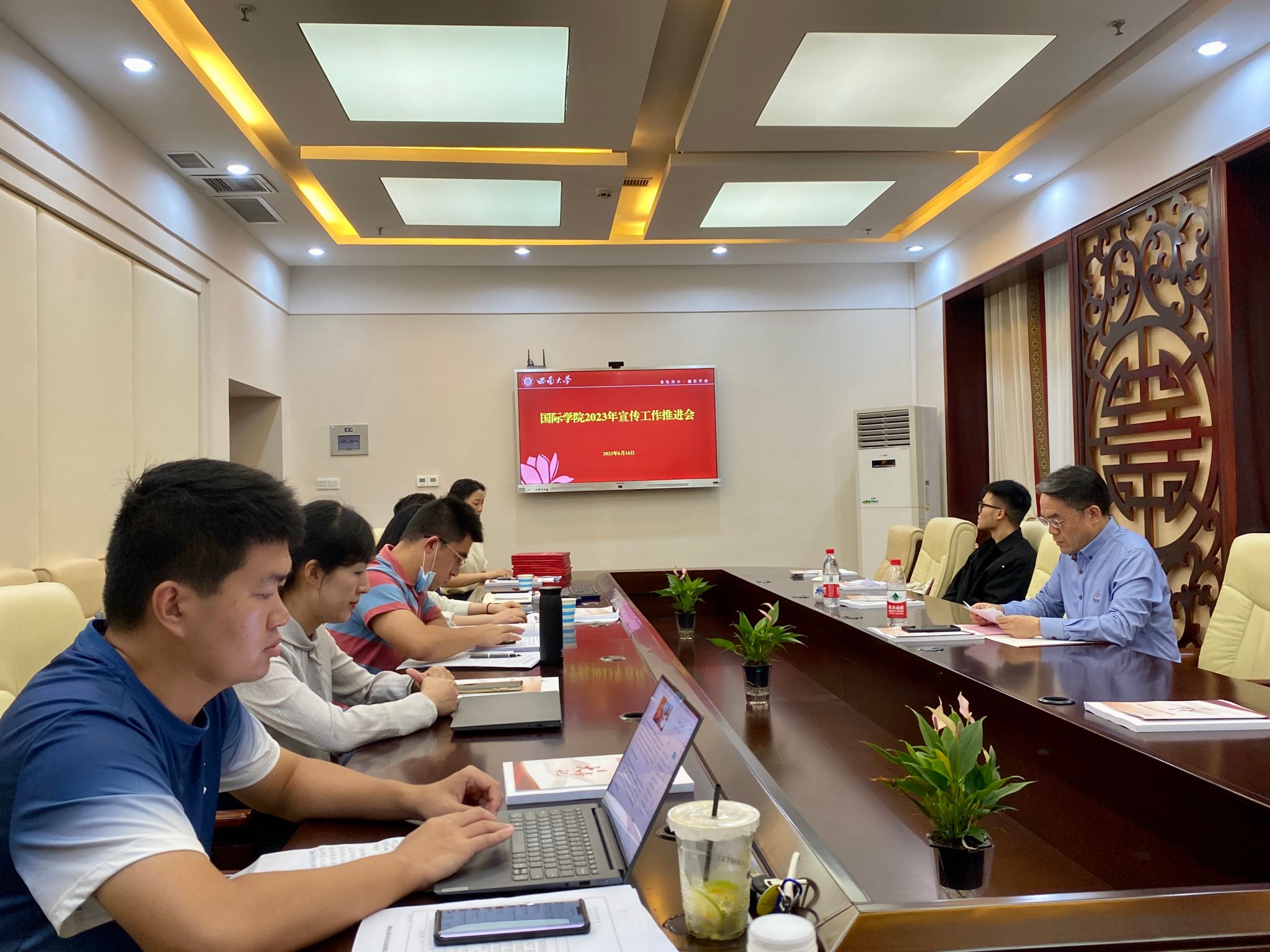 为深入学习贯彻党的二十大精神,全面展现党建工作与事业发展融合成果,推动宣传工作取得扎实成效,6月16日下午,bevictor1946韦德官网2023年宣传工作推进会在紫云楼签约室举行,全体教职工和学院研究生会融媒体中心干事参加会议,会议由党委书记刘猛主持。