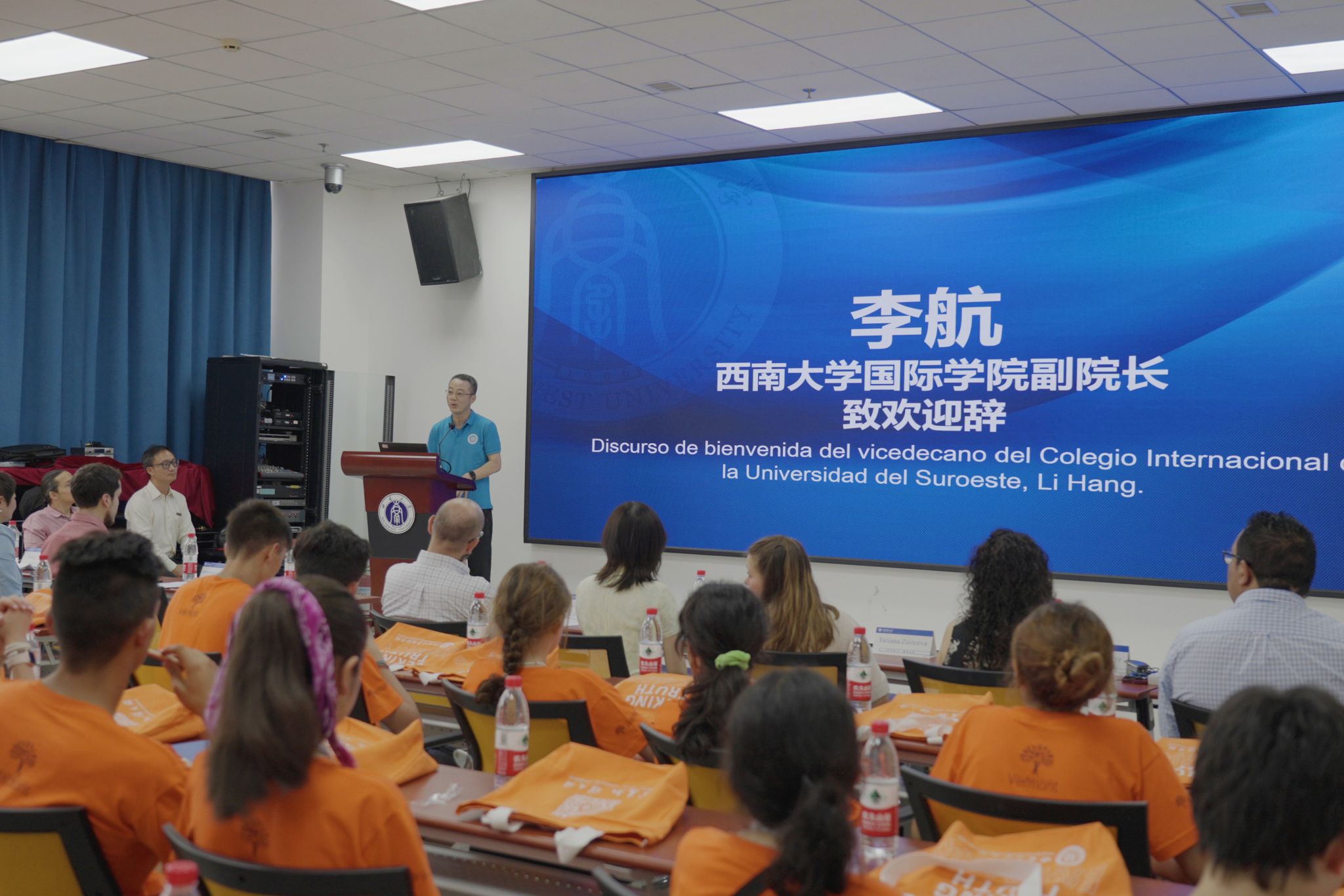 bevictor1946韦德官网汉语国际教育系胡洪瑜老师发言,希望同学们用心体验重庆的文化、品尝重庆的美食、认识重庆的人民,在重庆的7天里能收获满满的回忆。